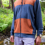 A true classic in the casual activewear wardrobe, this zippered sweater features style details that elevate it from pure utilitarian comfort to both stylish and practical. The large shoulder yoke on front and back is the perfect canvas for a contrast texture or colour. Choose from a partial or full zipper and a collar or lined three piece hood for a wide range of mix-and-match styling possibilities. Add or leave off the roomy kangaroo pockets.