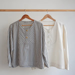 Suitable fabrics: Linen, poplin, lawn, lightweight denim and twill for a 'blouse' version. For a heavier 'outdoor layer' version you can use corduroy, denim, wool suit or a lightweight wool felt.