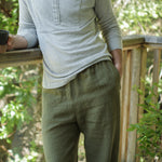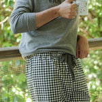 Classic pajama pants with mix and match details to suit any wearer. These straight leg pants are comfortable but not baggy. They feature an enclosed elastic waistband with the option of a drawstring to further perfect the fit. Pajama pants need not be boring to sew - these pants will teach you many of the essential techniques for sewing jeans and trousers in the future. Learn to install useful pockets and employ topstitching to create very functional and hardwearing loungewear.