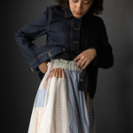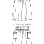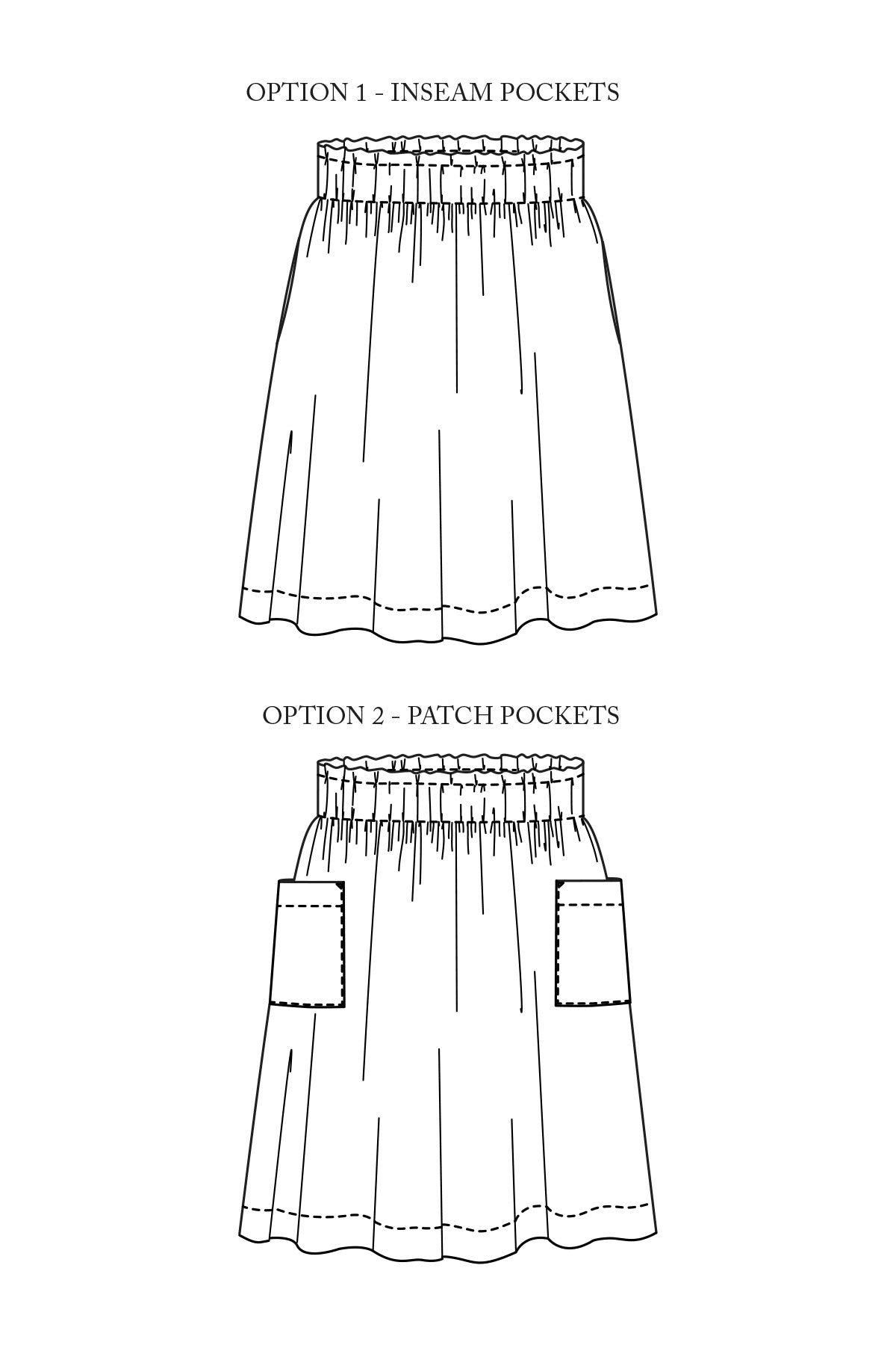 A simple set of instructions to make a skirt with a deep elasticated waistband. Make with patch, inseam or no pockets. A zero to minimal waste pattern that can make the most of fabrics in your stash.