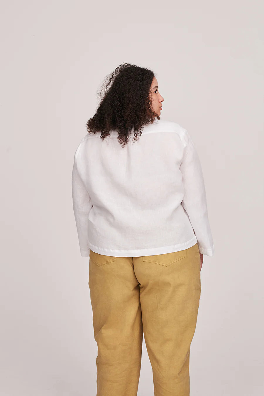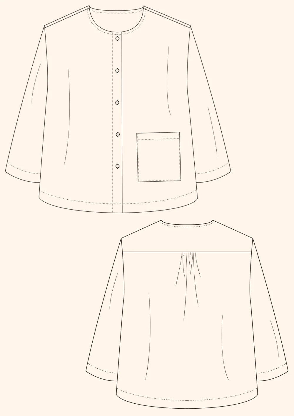 Suitable fabrics: The Frida Shirt works in a range of fabrics from lightweight and breathable to thicker and more cosy. Fabrics such as cotton poplin/lawn, linen, very lightweight denim, needlecord, light woollen weave, flannel and brushed cotton are all good options.