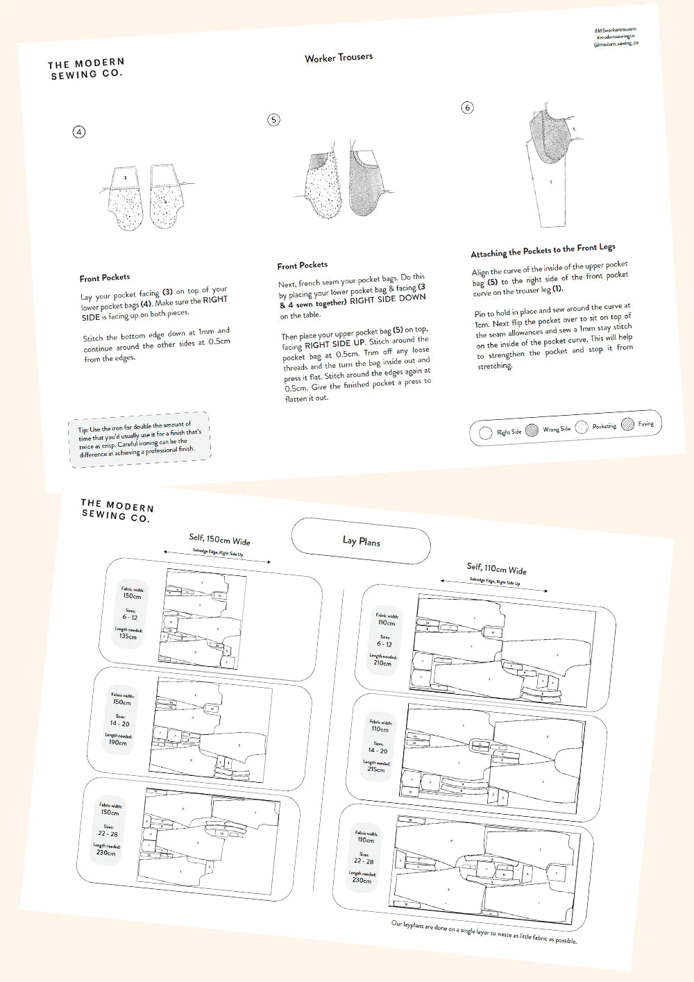 The Modern Sewing Co. Worker Trousers are the ultimate everyday trouser and our best selling pattern. They are supremely practical with hundreds of you saying they're your comfiest trousers yet. Designed to stand the test of time, you'll be using high end finishing techniques to create a really long lasting pair of trousers.