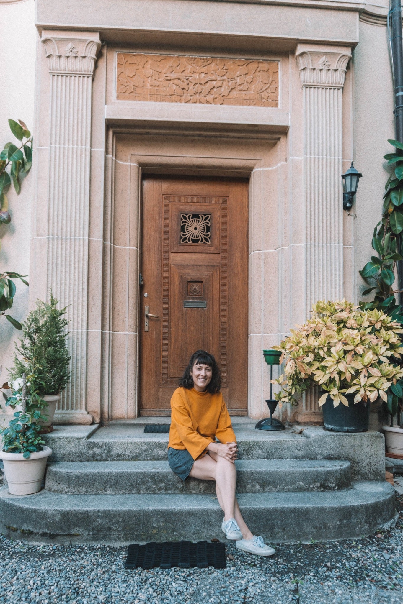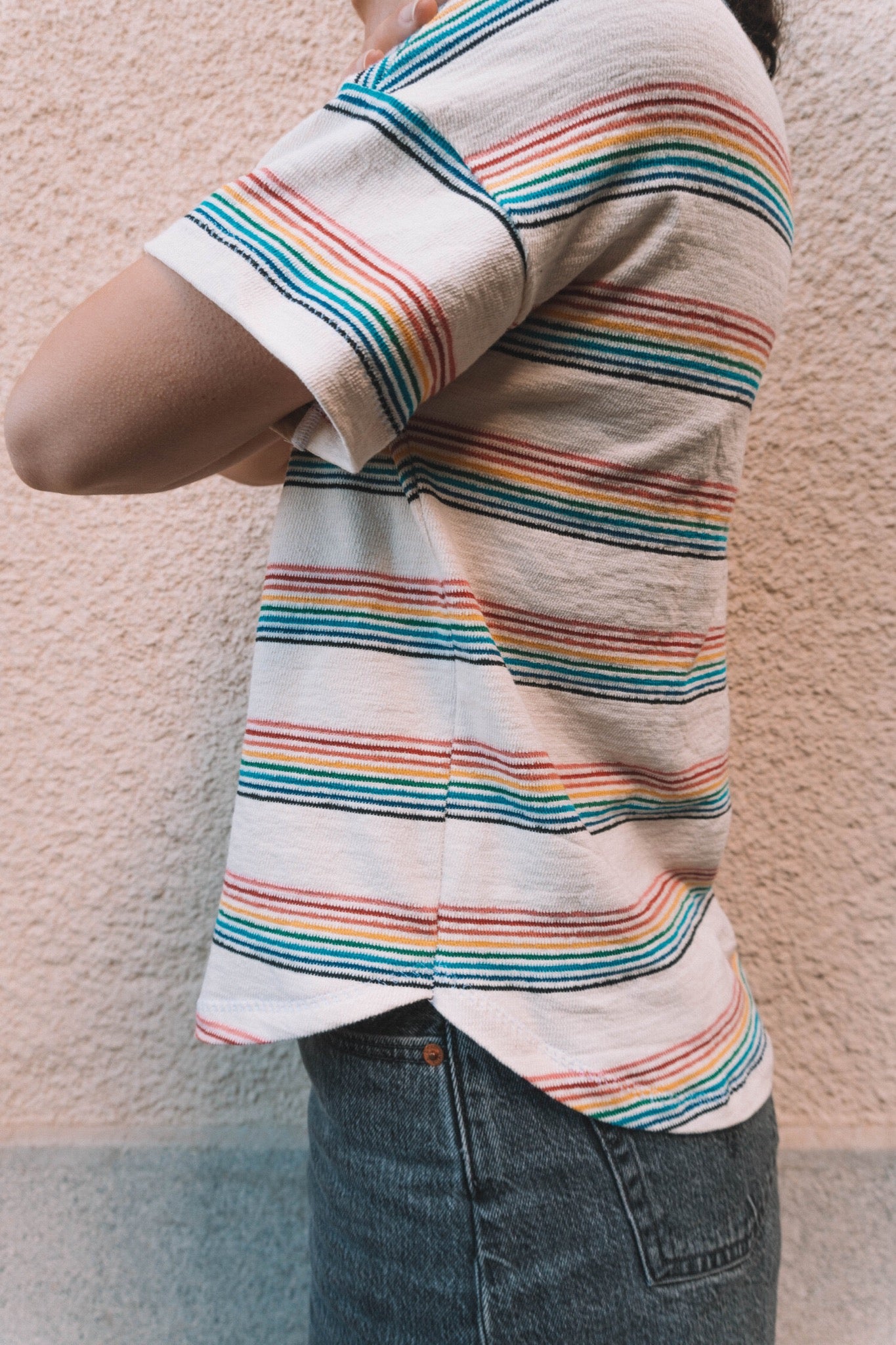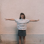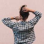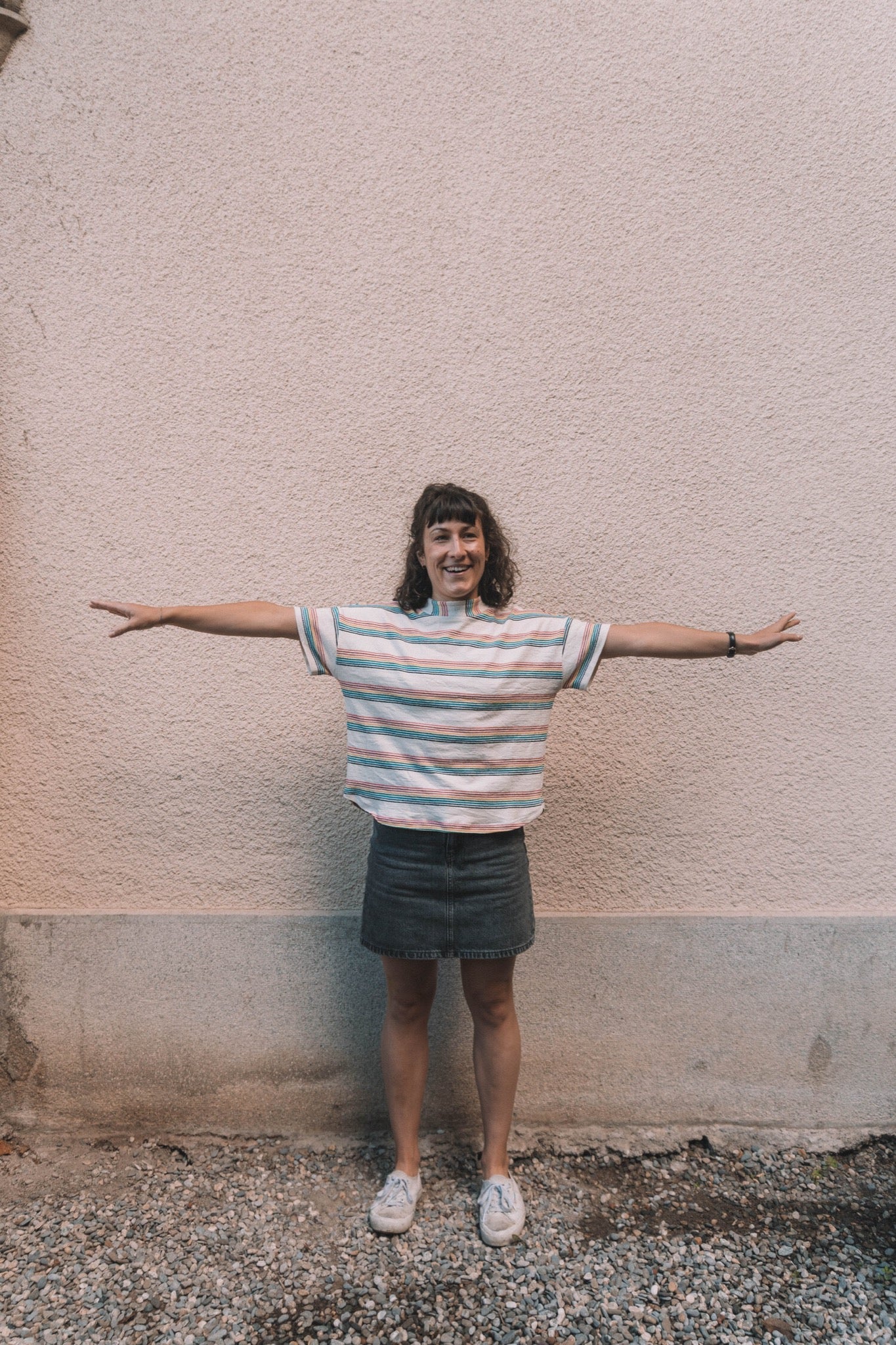 The Molly pattern comes with two views, one with long sleeves and one with short sleeves. The neckline features a beautiful mock neck and the front and back hem are curved, creating that gorgeous point at the bottom of the side seam. The dropped shoulder seam gives the top a relaxed look.