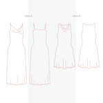 The dress pattern comes with two views, one with skinny straps and one with wider straps.