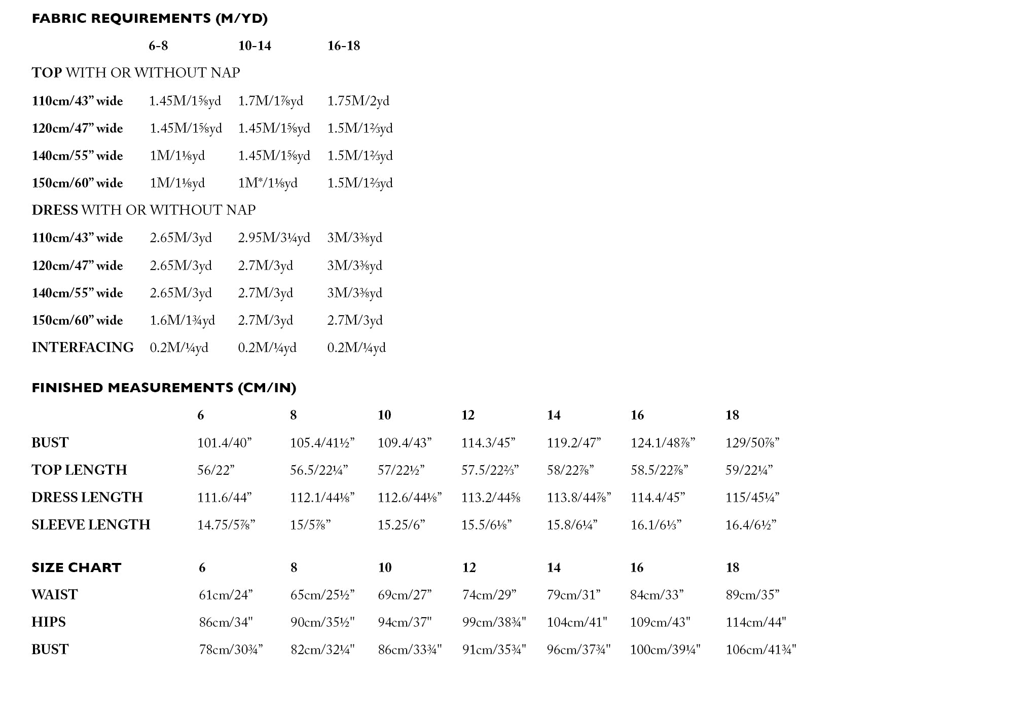 Fabric suggestions - light to medium weight woven cottons such as poplin, chambray or dress weight denims. Crisp linens, needlecord, lightweight wools. If you are a confident dressmaker you could use tencel, tencel linen, and laundered linen.