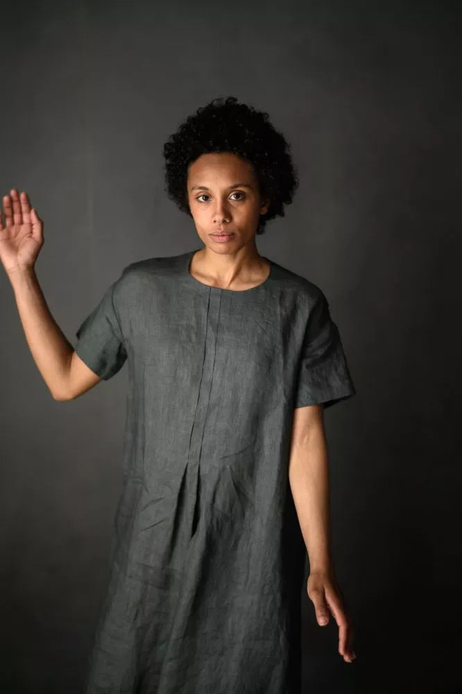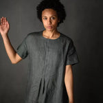 Dress it up or down, this boxy top or dress is going to be an essential wardrobe addition. The front pleat detail is enough to make this design stand out. The simple rouleaux loop-back neck closure reflects the simplicity of the silhouette.
