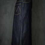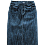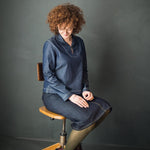 Slim fitting jeans skirt with a back split and shaped waistband. This is a pattern that we would advise making a toile first, firstly to adjust the fit if needed but secondly to familiarise with the pattern instructions. We have not used a traditional run and fell jeans seam, we have chosen instead to topstitch the seam, which is easier to achieve on a domestic machine.