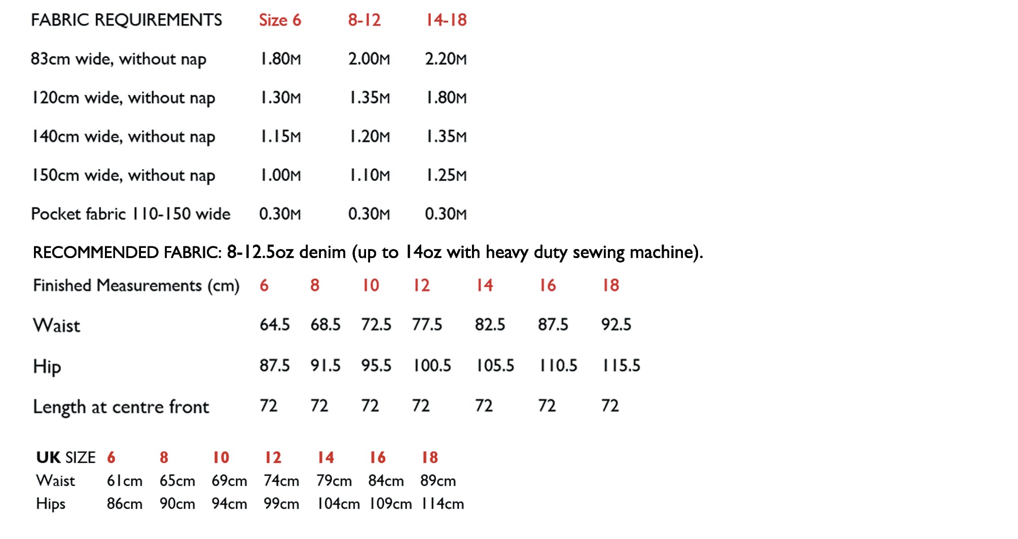 Fabric suggestions - 8 - 12.5oz denim (up to 14oz with a heavy duty sewing machine)