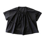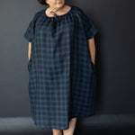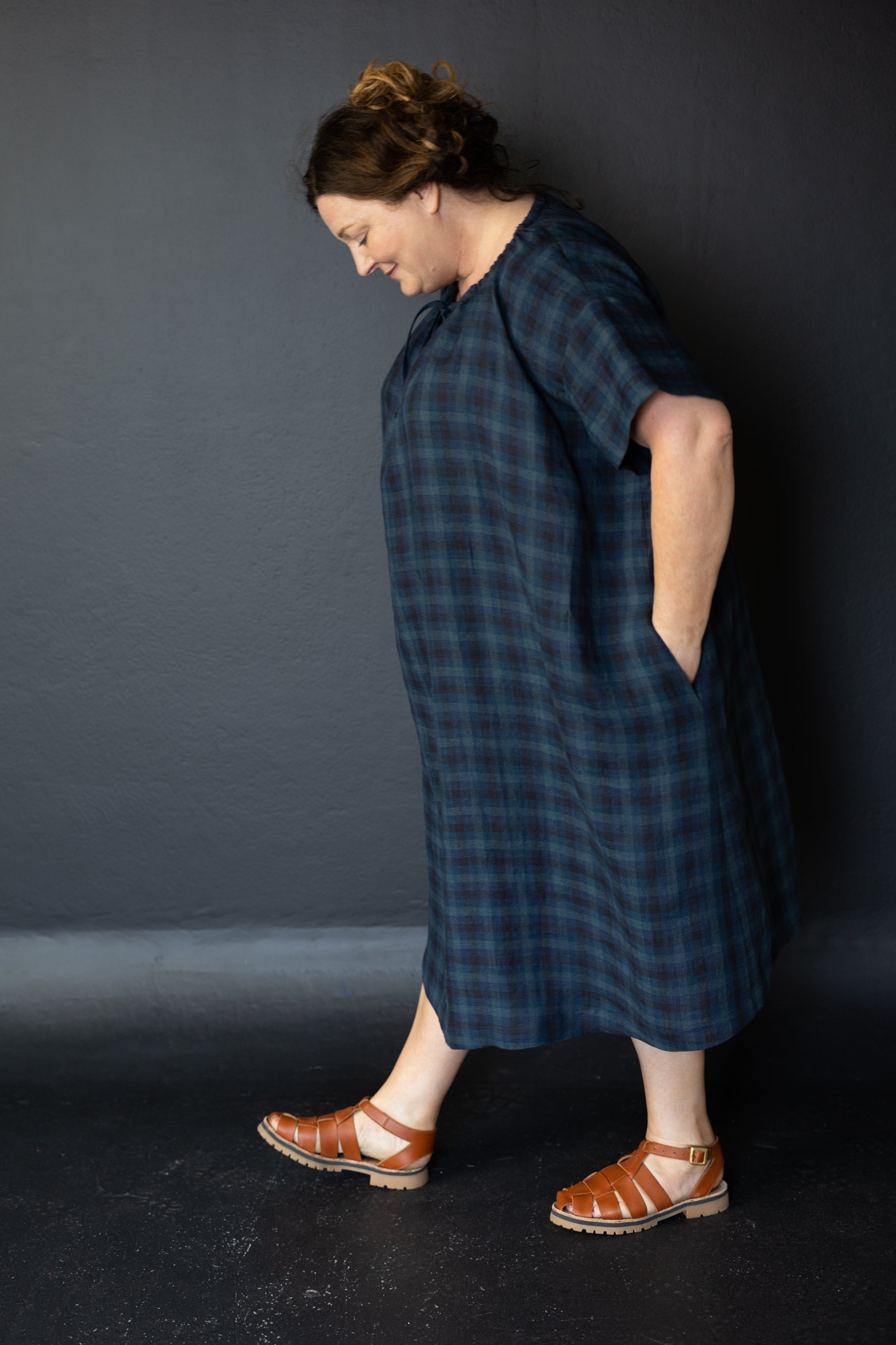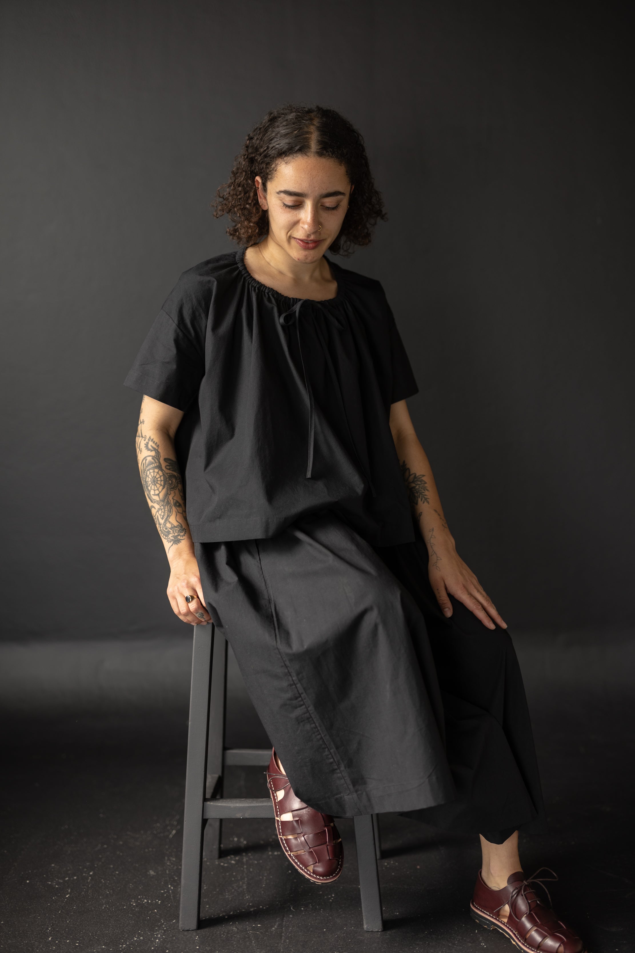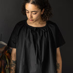 A simple t-shaped dress or top with a gathered drawstring neckline that can be adjusted to sit at your desired height. Make it sleeveless or with sleeves, structured and architectural in poplin or soft and relaxed in linen.