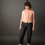 Fabric suggestions - 5-8oz linen, 5-10oz denim, light - medium weight corduroy, wool, wool blends, cotton canvas or twill. For the lining: lightweight wovens such as calico, cotton lawn, cotton, cotton blends, Tencel/linen (when choosing your cloth consider that the lining fabric may be visible).