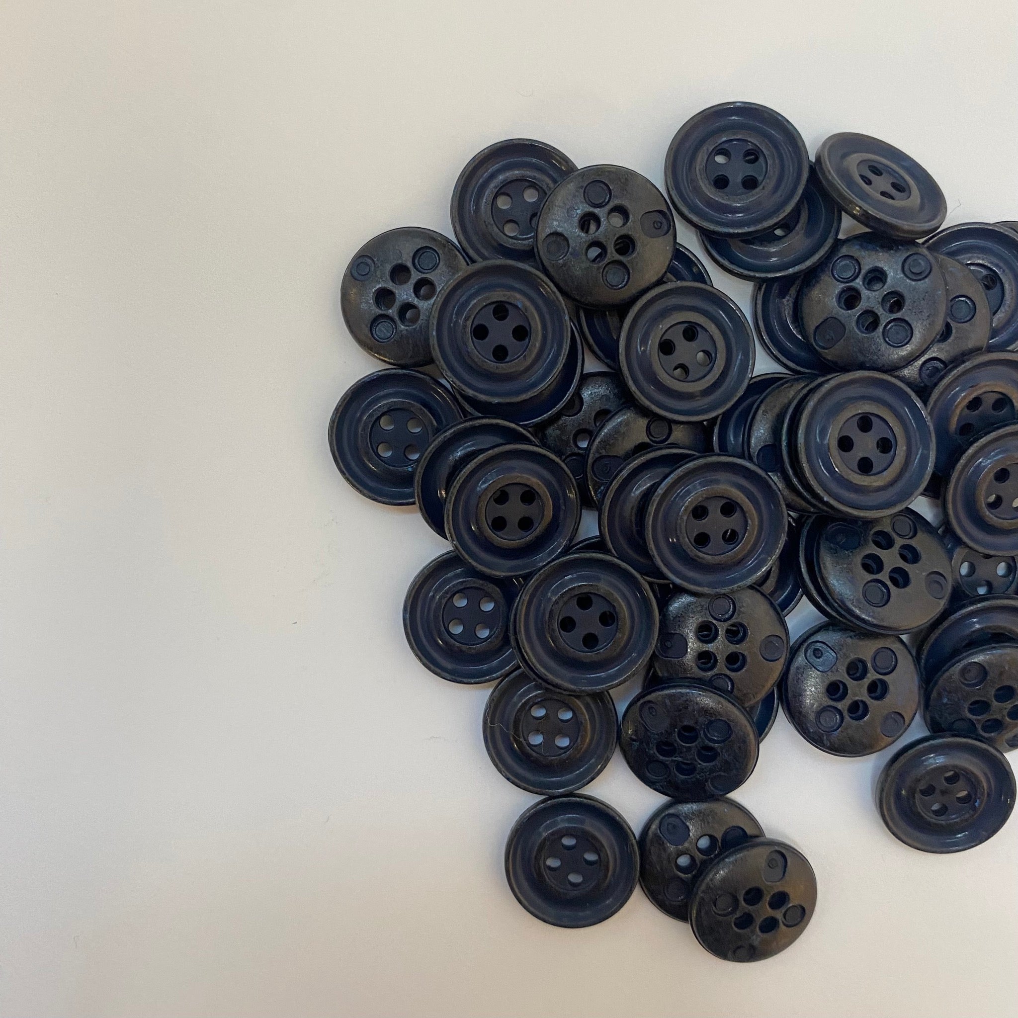 A high-quality 4-hole button with a rim edge and a vintage metallic wash finish. Created using a two-stage finishing process to achieve its rustic look. Available in 8 beautiful colors. Made in Italy.