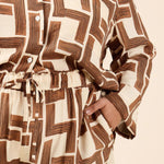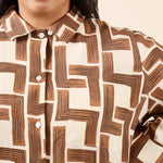 • The Fran top features a shirt collar, cuffed sleeve, back yoke, inverted back pleat, and button loop at the neck.
