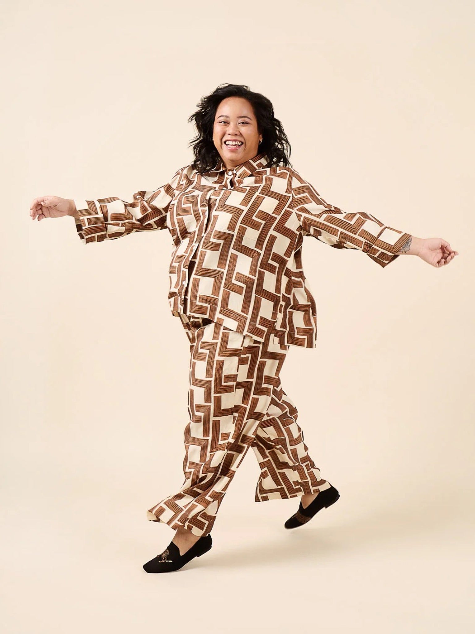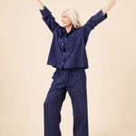 Elevate your lounging and sleeping game with the Fran Pajamas. Featuring tailored details with a slouchy fit, they look just as good in bed as they do glammed up and on the town.