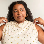 The Dew Top/Dress is a simple cowl neck style with big impact! The pattern includes a dress view with a shaped hem, roomy pockets, and a comfortable fit. The top features a subtle high-low hem and a line silhouette. The pockets on the dress are sewn flat to the front for maximum carrying capacity without added bulk. The fit is loose without being baggy. This is a comfortable style that sews up quickly! You’ll want to make this fun pattern over and over again!