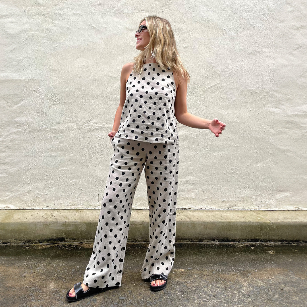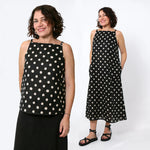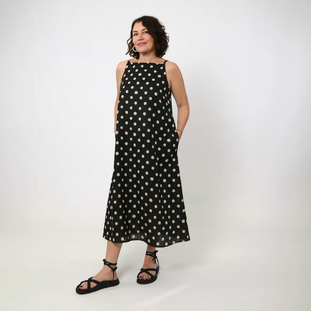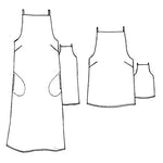 The Romy Top and Dress share a slightly flared, semi-fitted silhouette with bust darts. The hip-length top and midi-length dress features a clean, square neckline finished with a deep facing, a choice of shoestring or wide straps, and a narrow, topstitched hem. The dress version also has stitched-down inseam pockets. Simple and timeless, both offer an effortlessly comfortable and stylish addition to your spring/summer wardrobe.