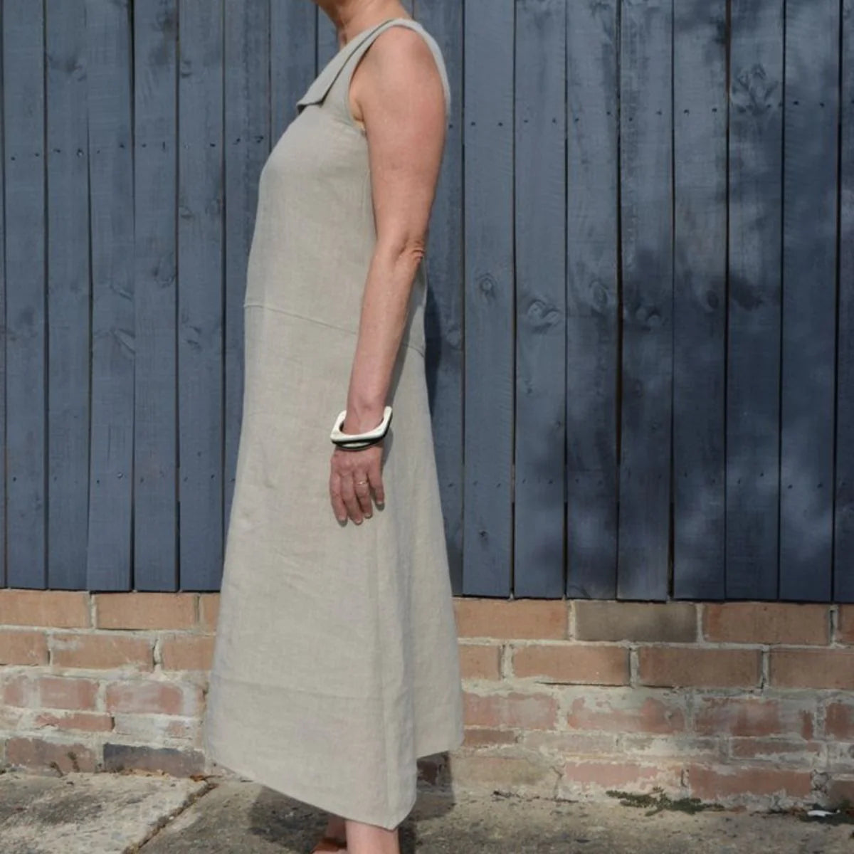 Recommended fabrics: light to medium weight linens or linen blends, wool crepe and tri-acetate/poly blends.
