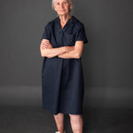 A loose fitting dress or top with front and back pleats, side in-seam pockets (dress only), breast pocket and a sailor collar. Perfect attire for any boardwalk.