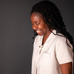 Fabric suggestions - medium weight dress weight wovens, cotton sanded twill, 6-9oz denim, linen, corduroy, tencel, tencel/linen. The more structured the fabric the more sculptural your top/dress will look. If you are using a heavier fabric you may want to use a lighter weight cloth for the under collar and front facings, to reduce bulk.