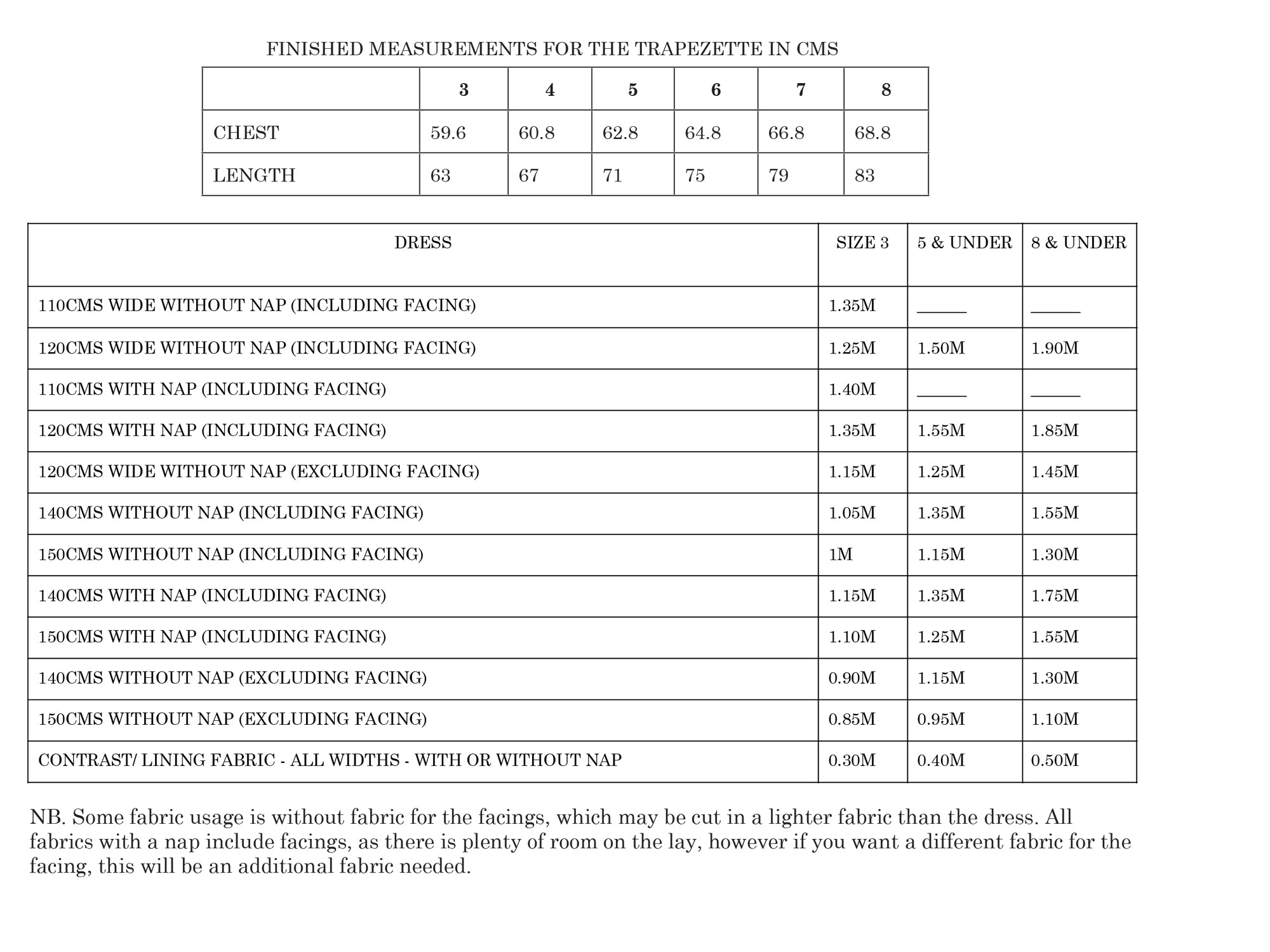 The Trapezette is simple to make with a single button back neck opening and rouleau loop and fully faced armholes and neck for small people comfort.