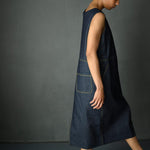 A classic pinafore for work and play. With a buttoned side fastening, side and back pockets. Make it long with a back split or short just below the knee. Accentuate the detailing with contrast top stitching or keep it simple with matching thread.