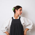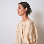 This style works beautifully in a woven fabric, approximately 80-160gsm in a light weight linen, cotton, silk or viscose. The twisted sleeve with gathers into the armhole can become quite bulky if the fabric is too this so be mindful of this when choosing something.