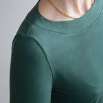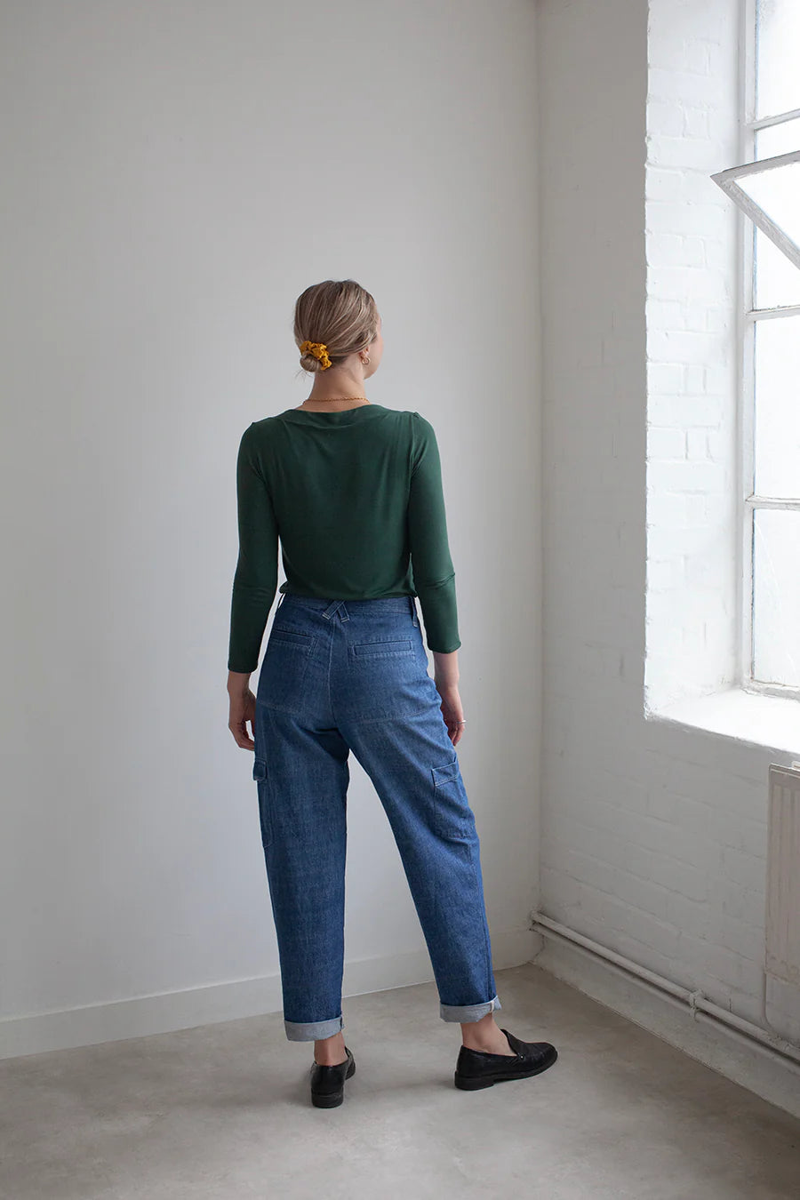 This pattern is a fitted jersey piece and it should feel like a second skin. The neck line is high and wide (giving it its ‘boatneck’ name) and the rest of the garment is fitted, from the shoulders to the sleeves and body. The sleeves are slightly cropped to sit above the wrist and the body length sits just on the hips.