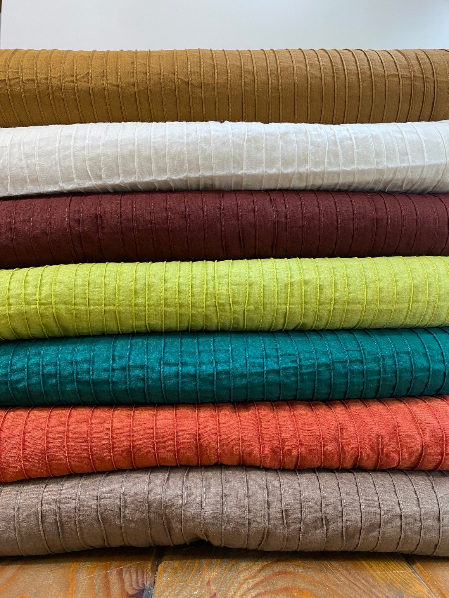 Handcrafted with care, this fabric shows off delicate, evenly spaced pintucks(1cm) that give it just the right amount of texture, subtle but so pretty. It’s that kind of detail that makes even simple pieces look thoughtfully made.