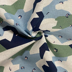 Our Blue geometric fabric is a cotton Linen blend Fabric with a bold blue and green geometric design it's great for standing out. Its lightweight and breathable qualities make it an ideal choice for creating long lasting and comfortable garments.