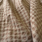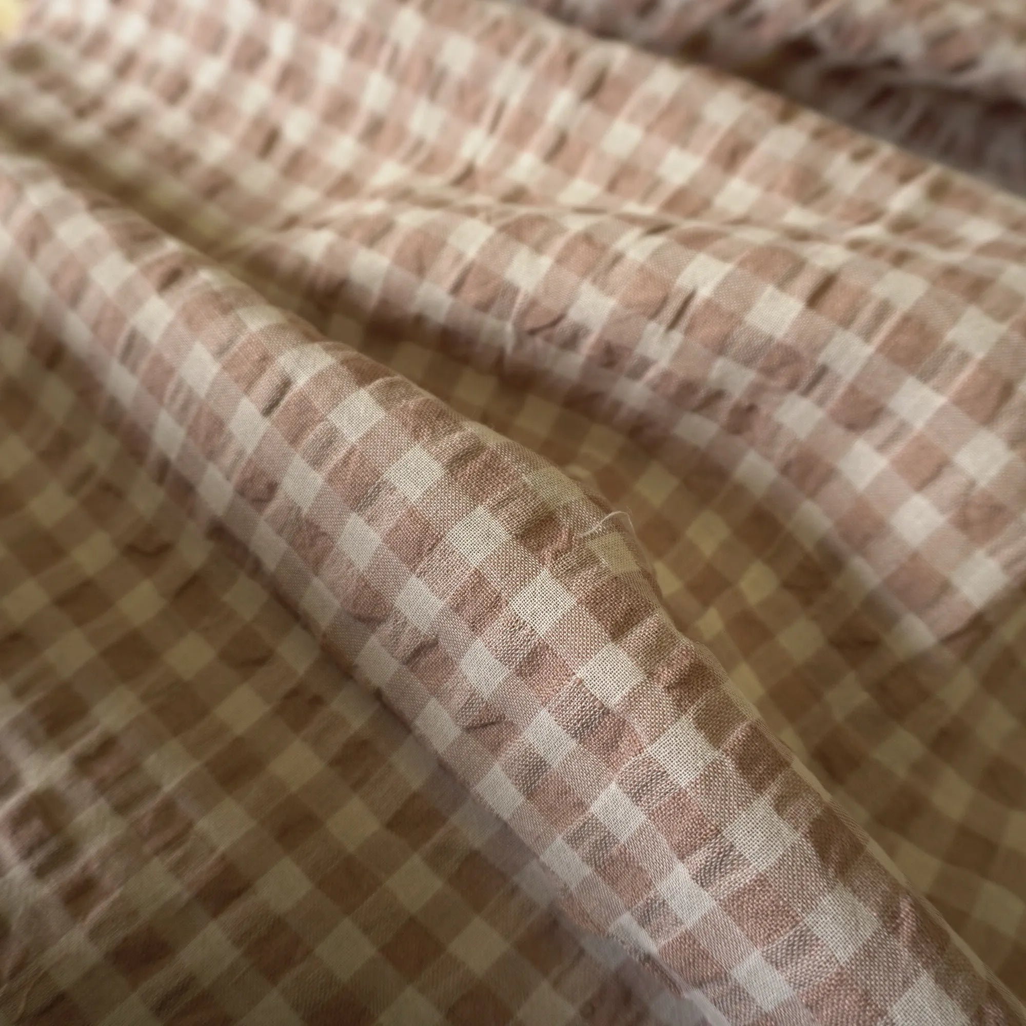 This light weight linen gingham fabric is perfect for creating comfortable and stylish summer garments. The fabric features a check pattern created by intersecting lines of alternating colors, creating a classic and timeless look. The fabric offers a bubble effect showcasing it's beautiful texture!