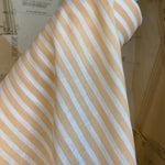 This light weight linen is sunshine ready candy stripe fabric, perfect for creating comfortable and stylish summer garments. The fabric features a stripe pattern of white and peach 8mm in width.