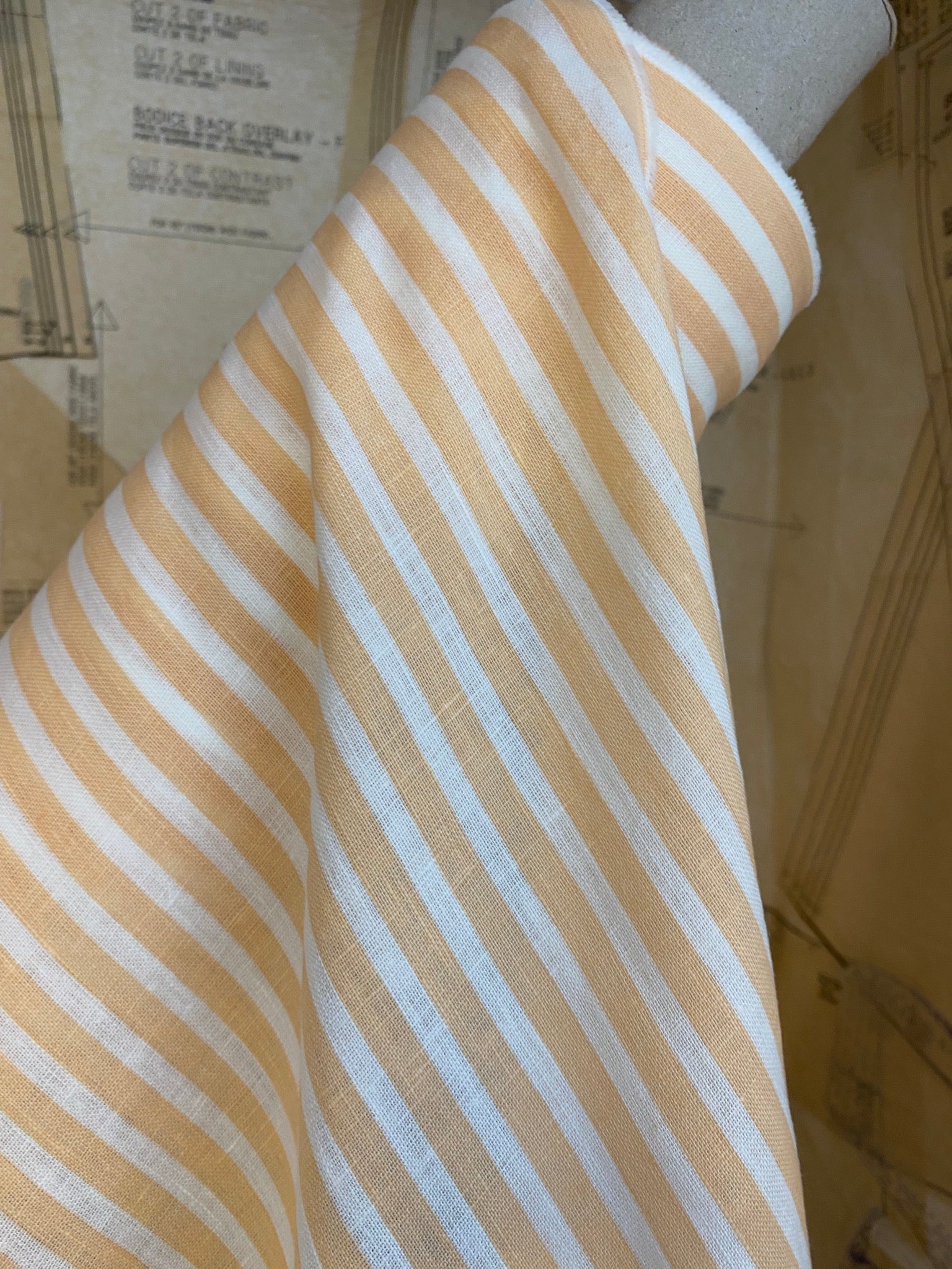 Candy Stripe Peach - Linen Fabric