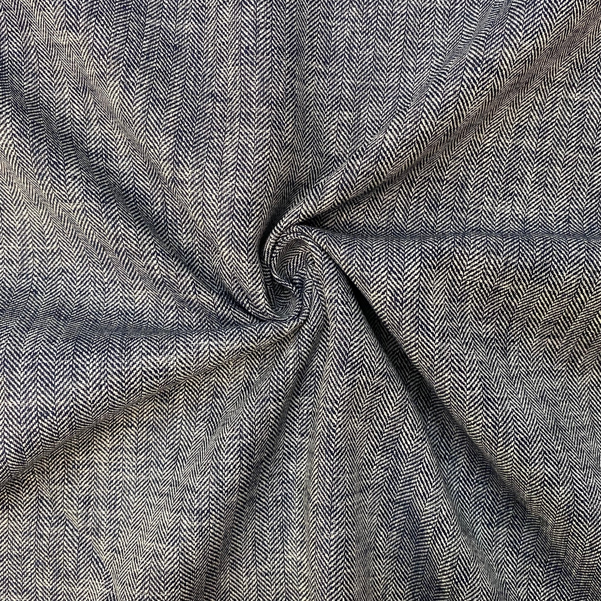 Yarn Dyed Twill Stripe - Navy - Cotton Linen Blend Fabric
