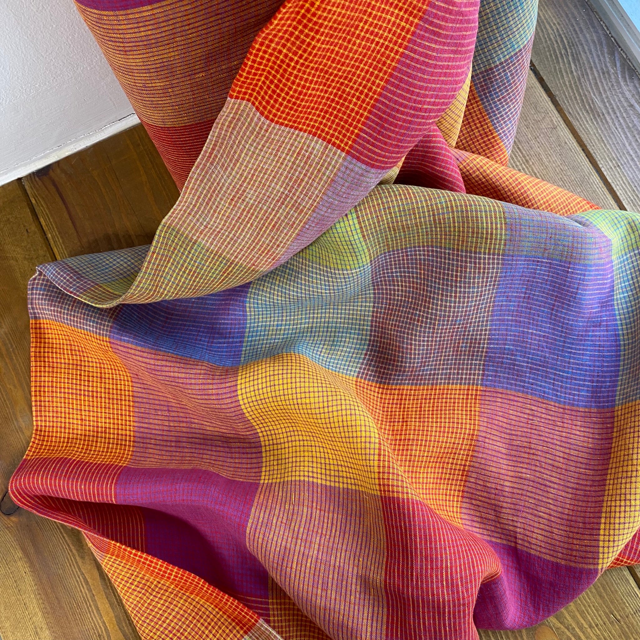 Yarn Dyed Washed Linen - Rainbow Gingham