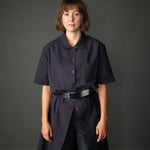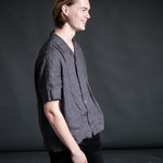 Swagger like a rebel to the ball park in this short sleeve boxy shirt, best worn casual in cotton or linen. Inspired by the American style of the fifties. Features a one piece collar, patch pocket, back yoke, short sleeves and short side splits.