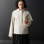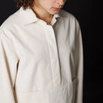 This pattern is designed for mid weight utility fabrics like denim and canvas, the heavier the fabric the more structured your silhouette will be. Lighter weight fabrics will result in a more relaxed, softer silhouette.