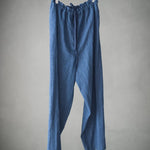 Gentle drawstring trouser with side pockets and a false fly, cut to sit on the waist. Features 3 versions – cropped & tapered trouser, wide straight trouser or shorts.