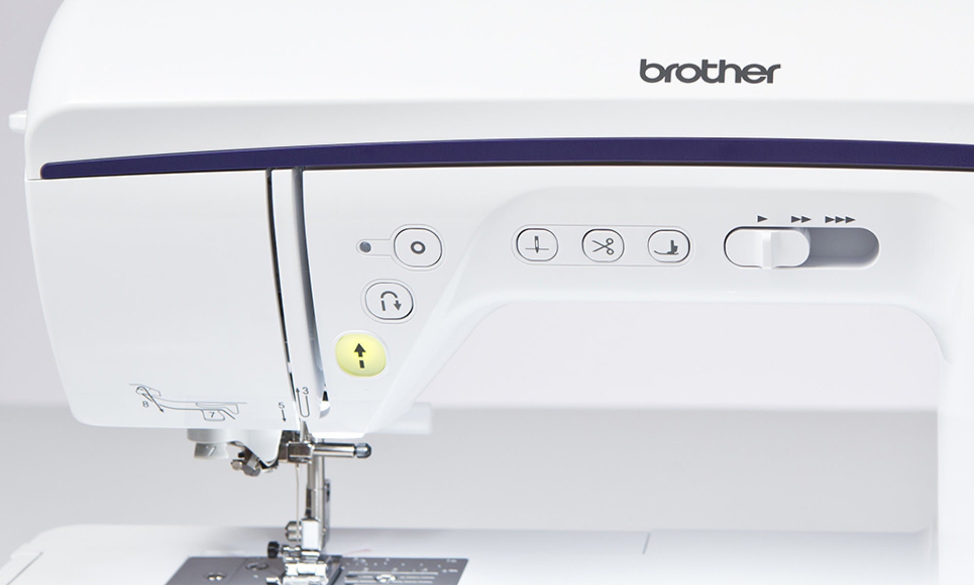 Slide speed control adjusts speed from slow to fast. This can also be set to alter stitch width whilst sewing.