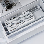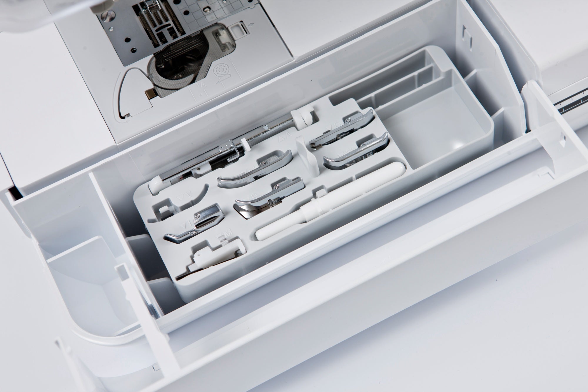 The Innov-is VQ2 includes a range of standard accessory feet such as a free motion open toe quilting foot and a 1/4” quilting foot with guide.