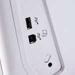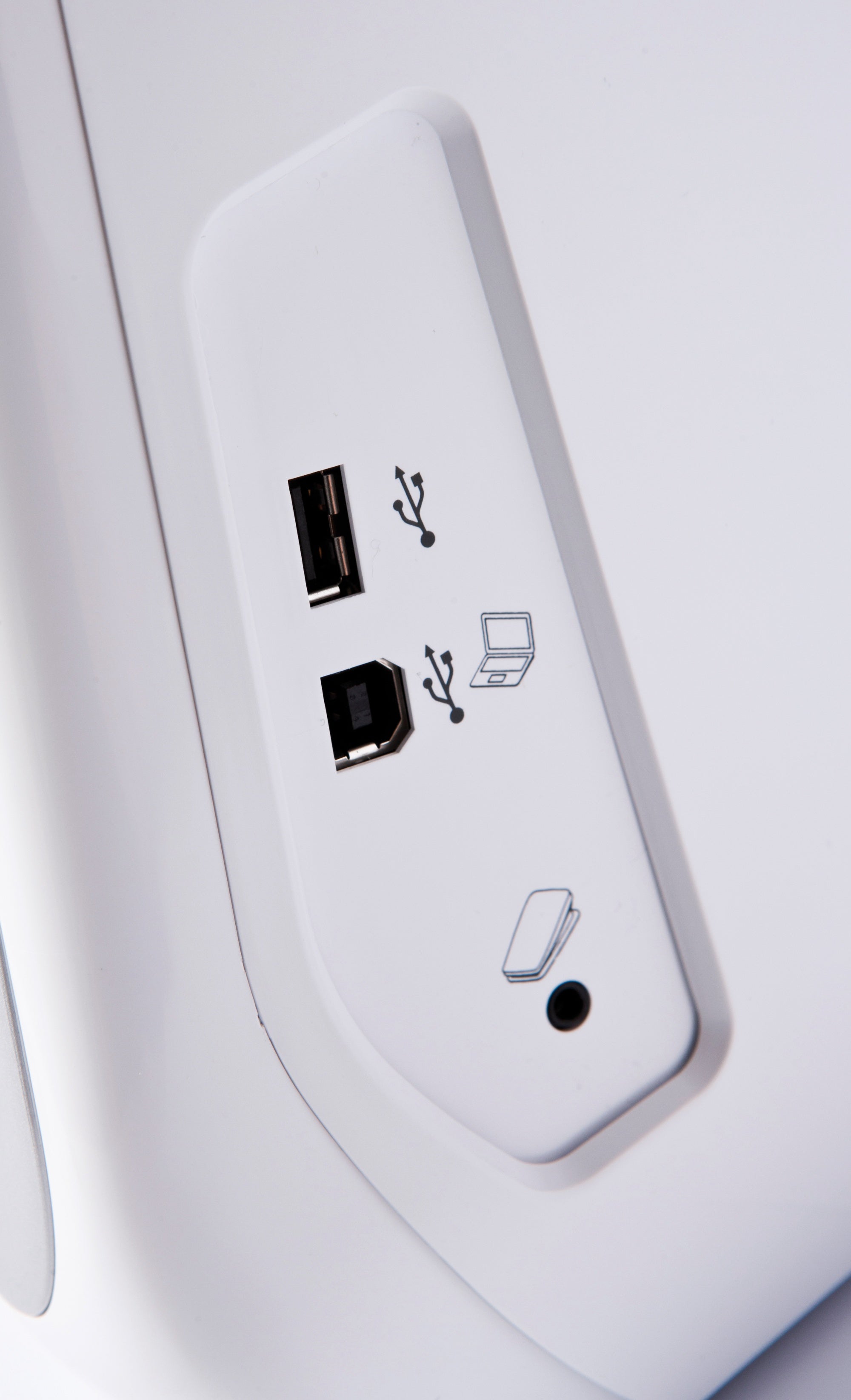 One for USB devices such as a mouse or memory stick to import and export stitches. And a port to connect to a PC for easy machine updates.