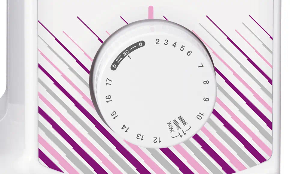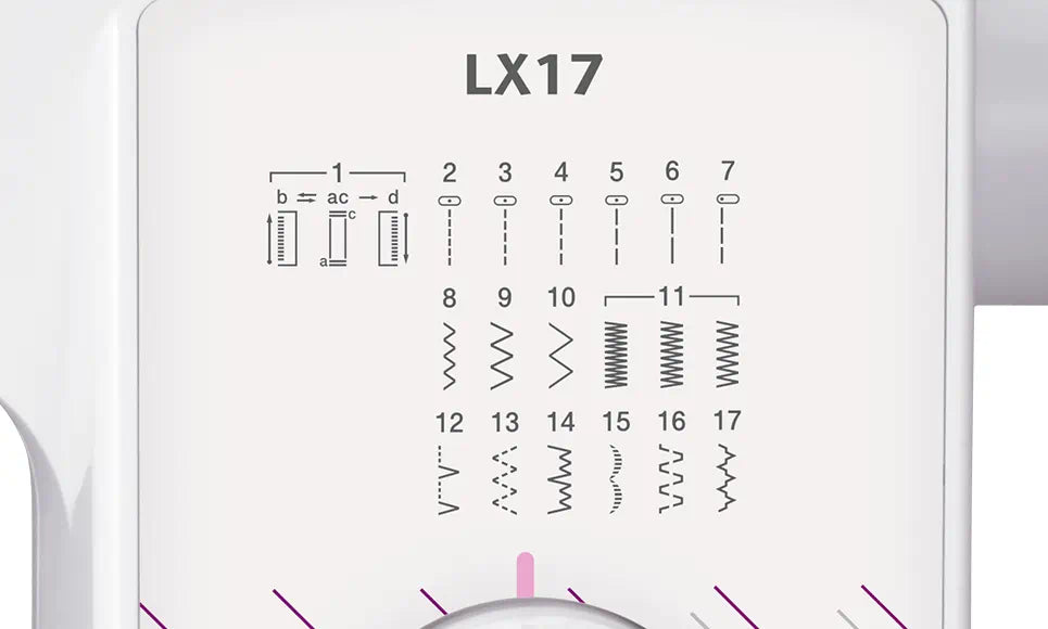 -17 built-in stitches – including an overcast stitch for perfect seam finishes