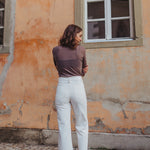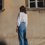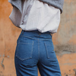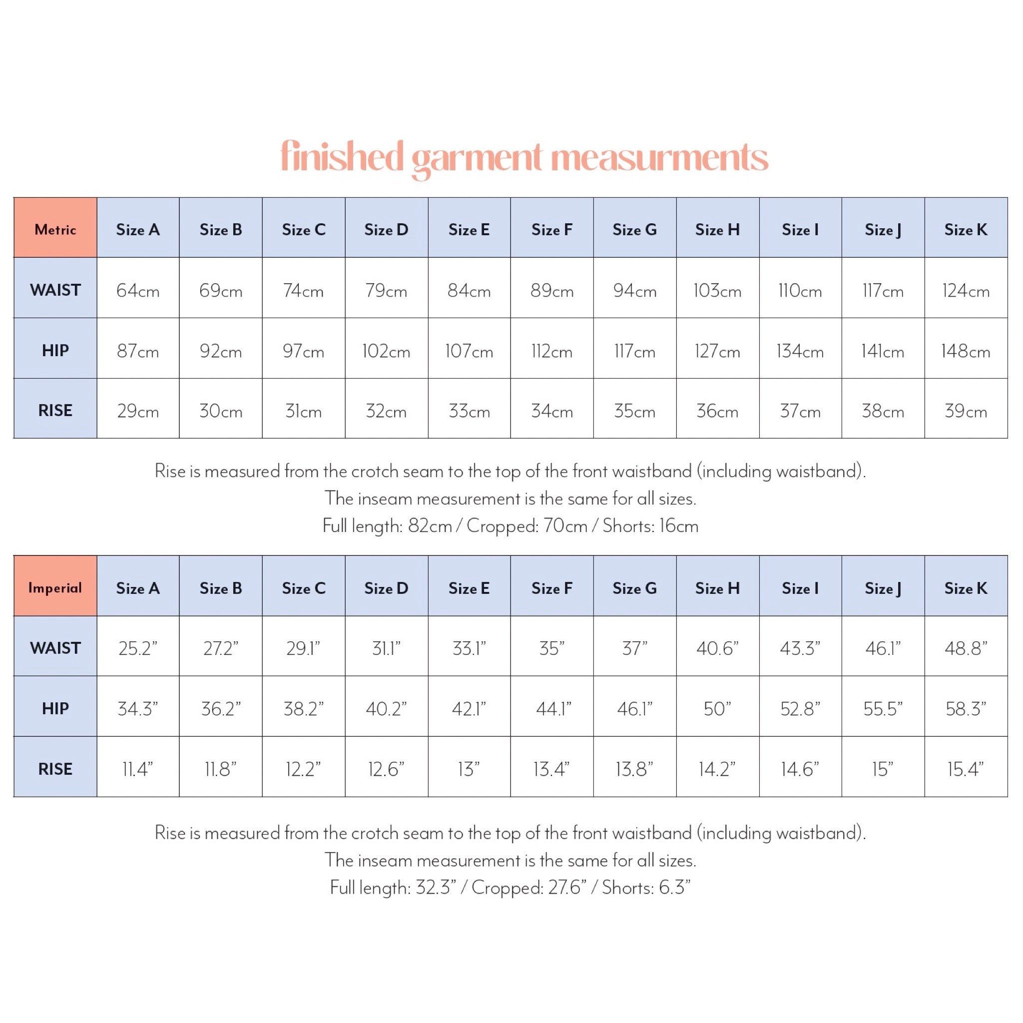 The Heidi Pants are a super high waist wide leg pant or jeans. This pattern has three different length options: Full length, ankle length and shorts. The front patch pockets give the pants a playful look. The back of the pant features a back yoke and patch pockets. Four big patch pockets on a women’s garment, that’s a win! I hope you enjoy sewing your Heidi Pants just as much as I enjoyed putting the pattern together.
