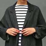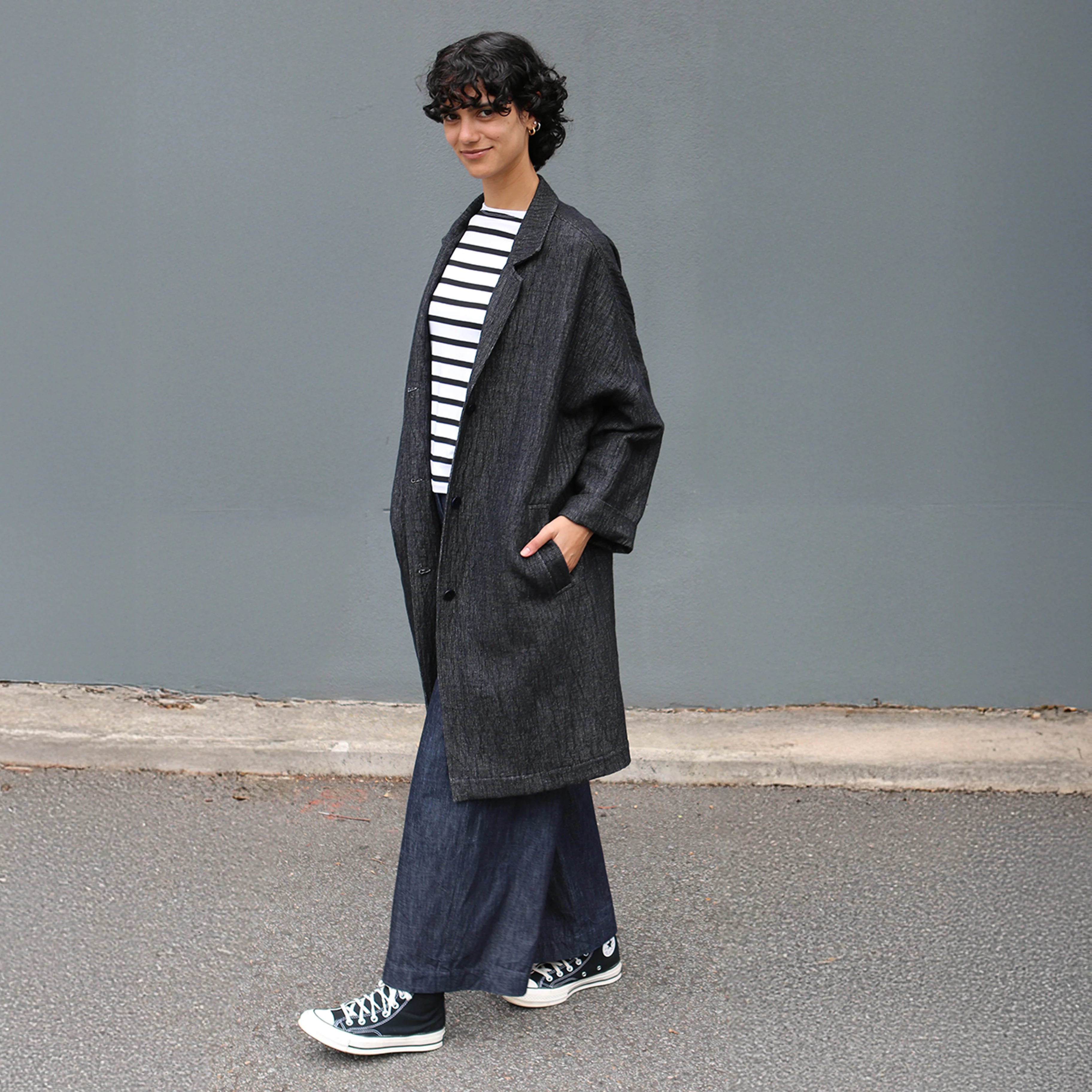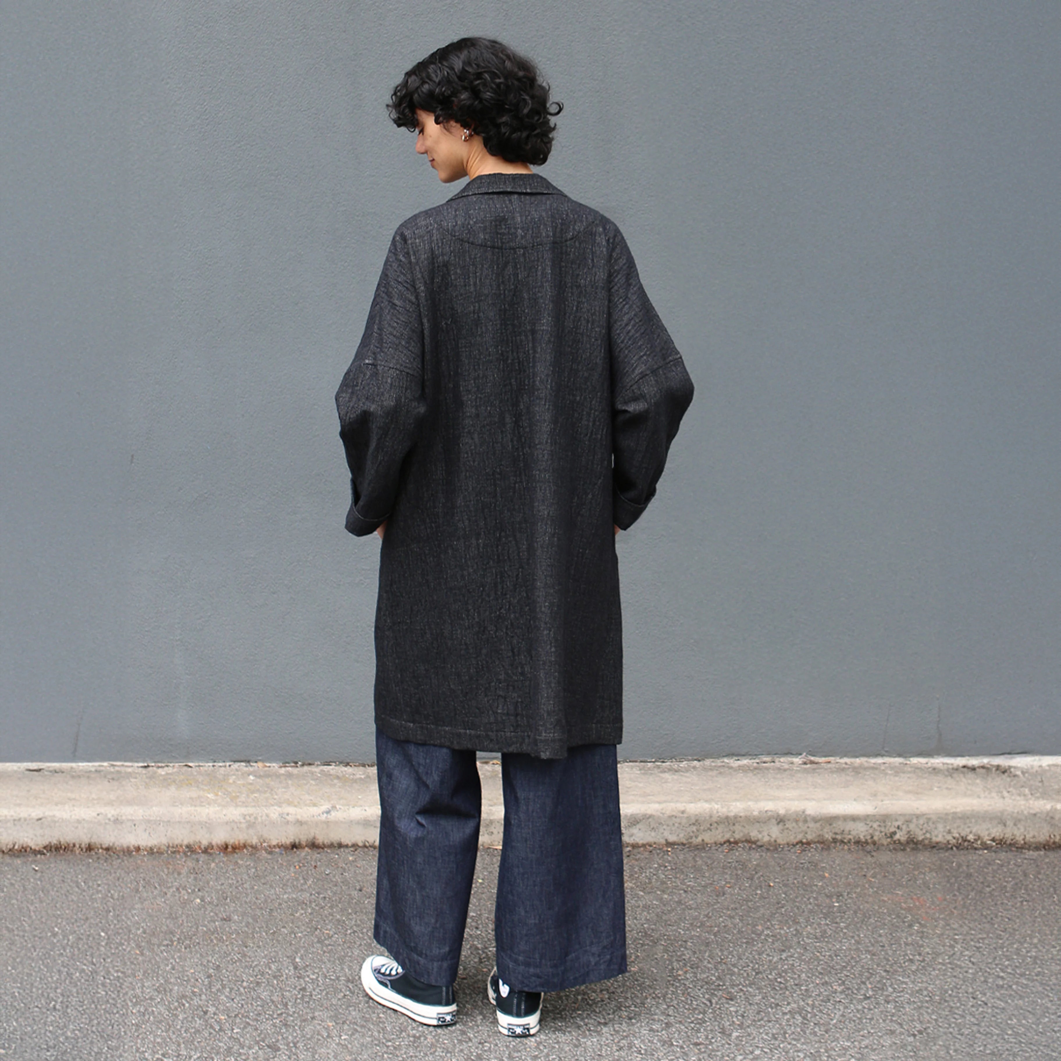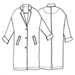 The Lisbon Jacket is a stylish, lightweight layer for the transition seasons. This unlined, knee-length jacket has dropped shoulders and long sleeves that taper to a generous hem which can be cuffed for a relaxed, modern look. Designer features are highlighted by topstitching and include the notched collar, wide single-welt pockets with bound pocket bags, and a deep, stitched-down back facing. Look for an interesting, medium-weight fabric with texture and body to make up this easy-to-wear jacket.