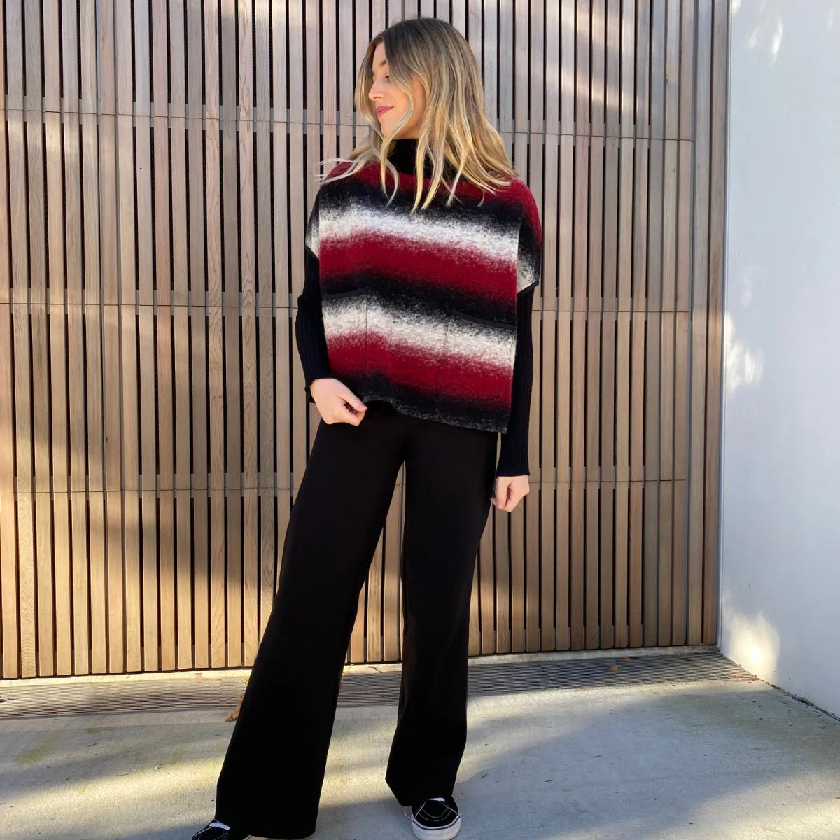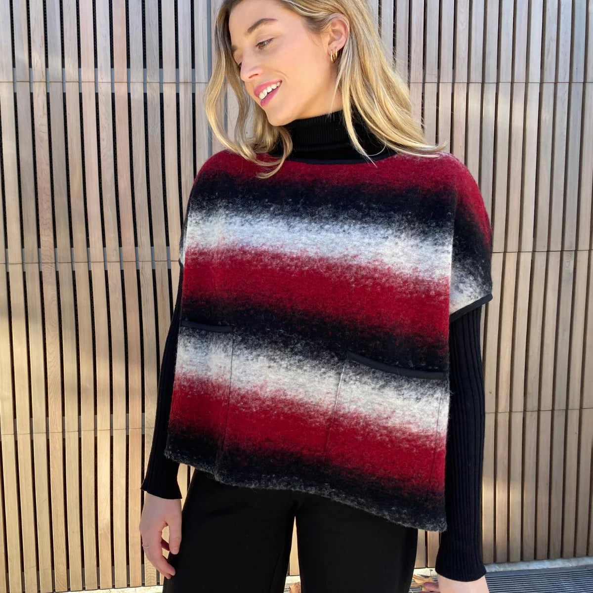 The Amara Vest is a loose, boxy vest/top and the perfect layering piece to add colour, contrast or texture to a relaxed look. Style features include drop shoulders, patch pockets and a wide neckline. View A has overlapped and raw edges for a super quick and satisfying sewing project. View B has bound edges for extra interest and more fabric options.