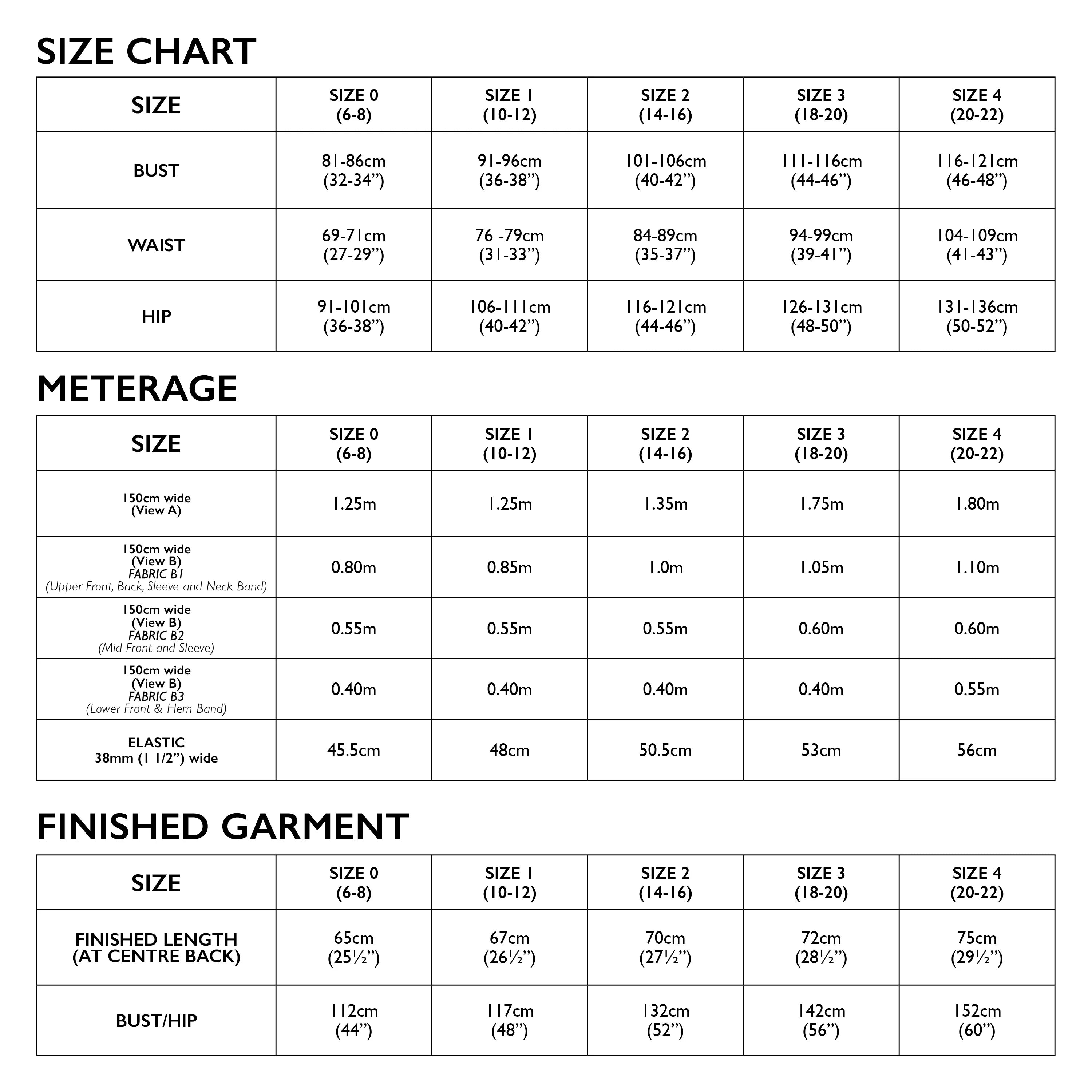 Notions: thread, 2.5mm stretch twin needle, 38mm (1 1/2") wide elastic (for sleeves with elasticized cuffs View B only)