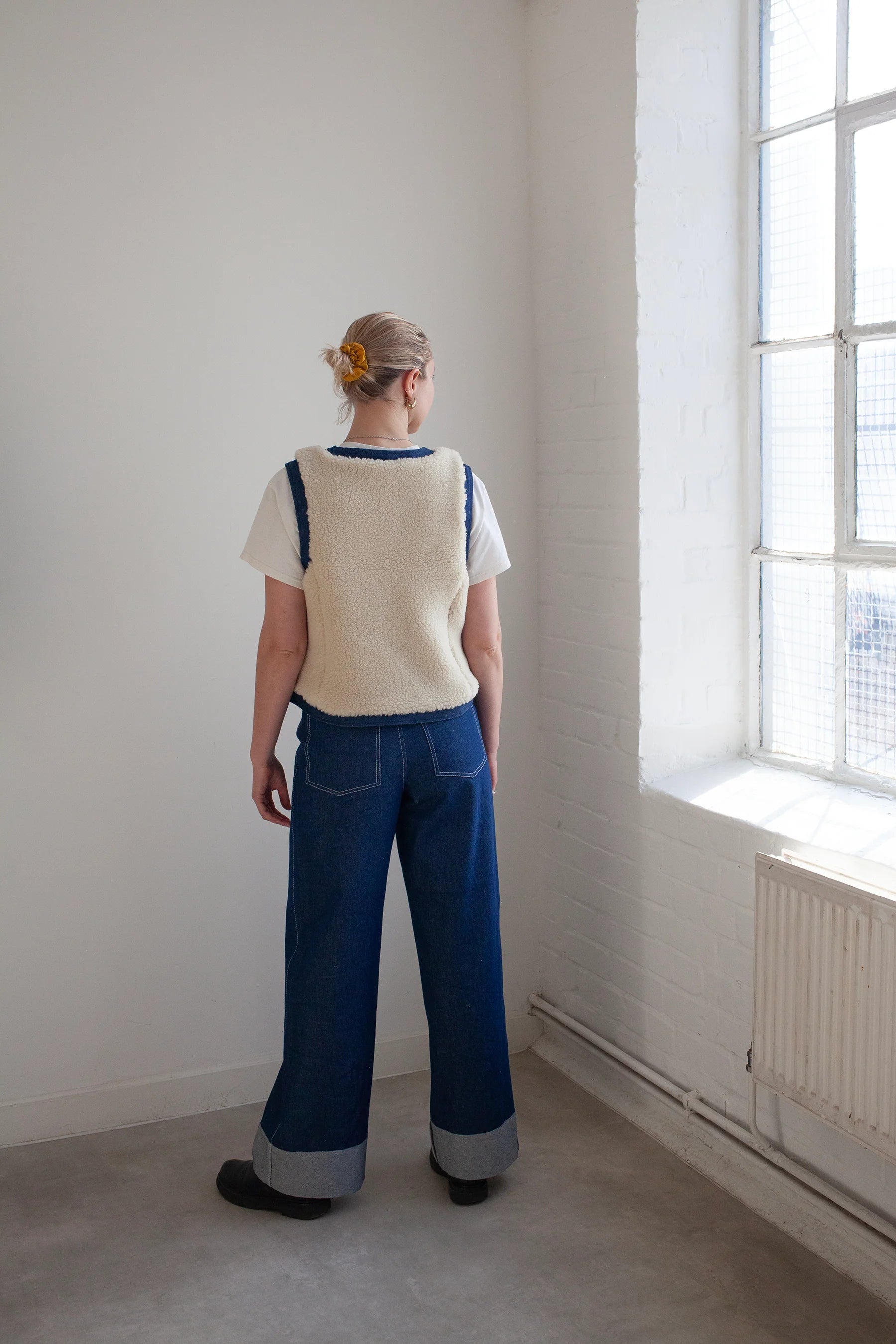 Suitable fabrics: This piece works in a huge range of fabrics such as wool, twill, denim, canvas, quilting, heavy linen. Lining fabric options include cotton, linen, wool and sherpa fleece.
