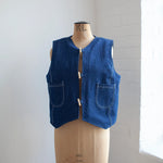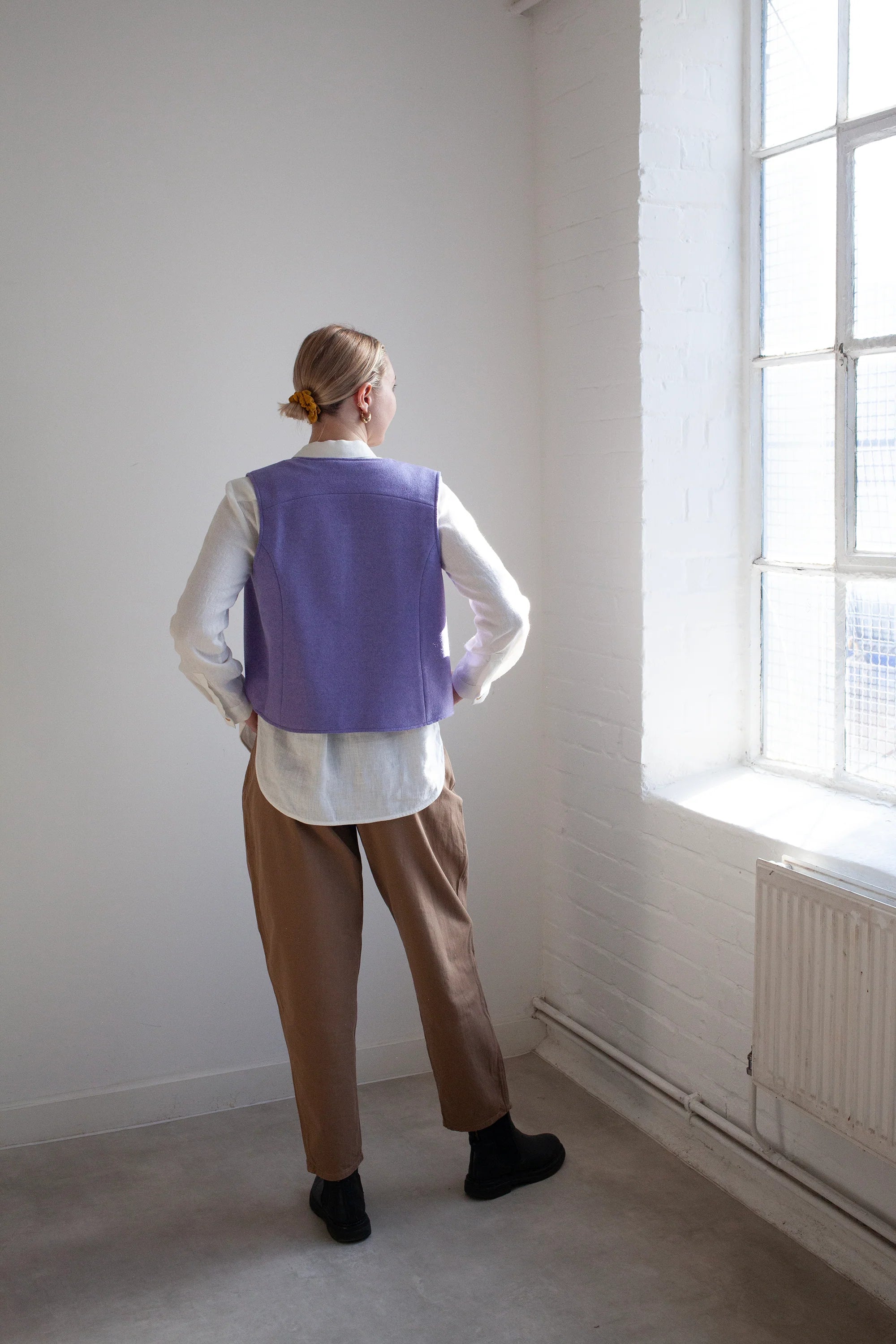 The Devon Waistcoat is a versatile, stylish layer no matter the season, with a relaxed fit and unique design features. The fastening options gives each piece a different personality and the lining enables extra cosy winter versions or a lightweight summer finish, which could even be reversible.