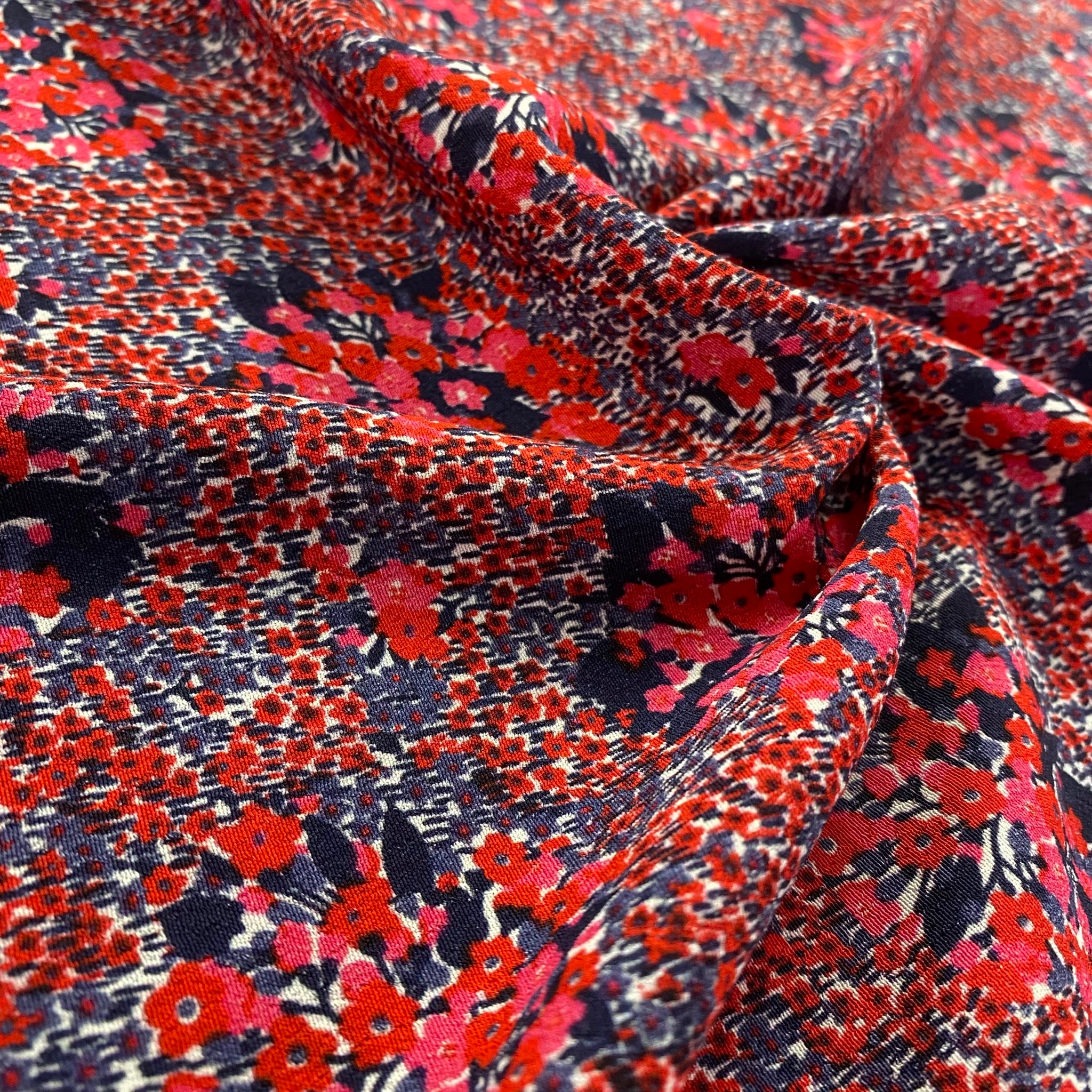 A Fabric Godmother exclusive design printed onto the most wonderful quality viscose crepe dressmaking fabric. A ditsy version of Lottie Floral with posies of pink and red flowers bursting through a field of tiny blooms.