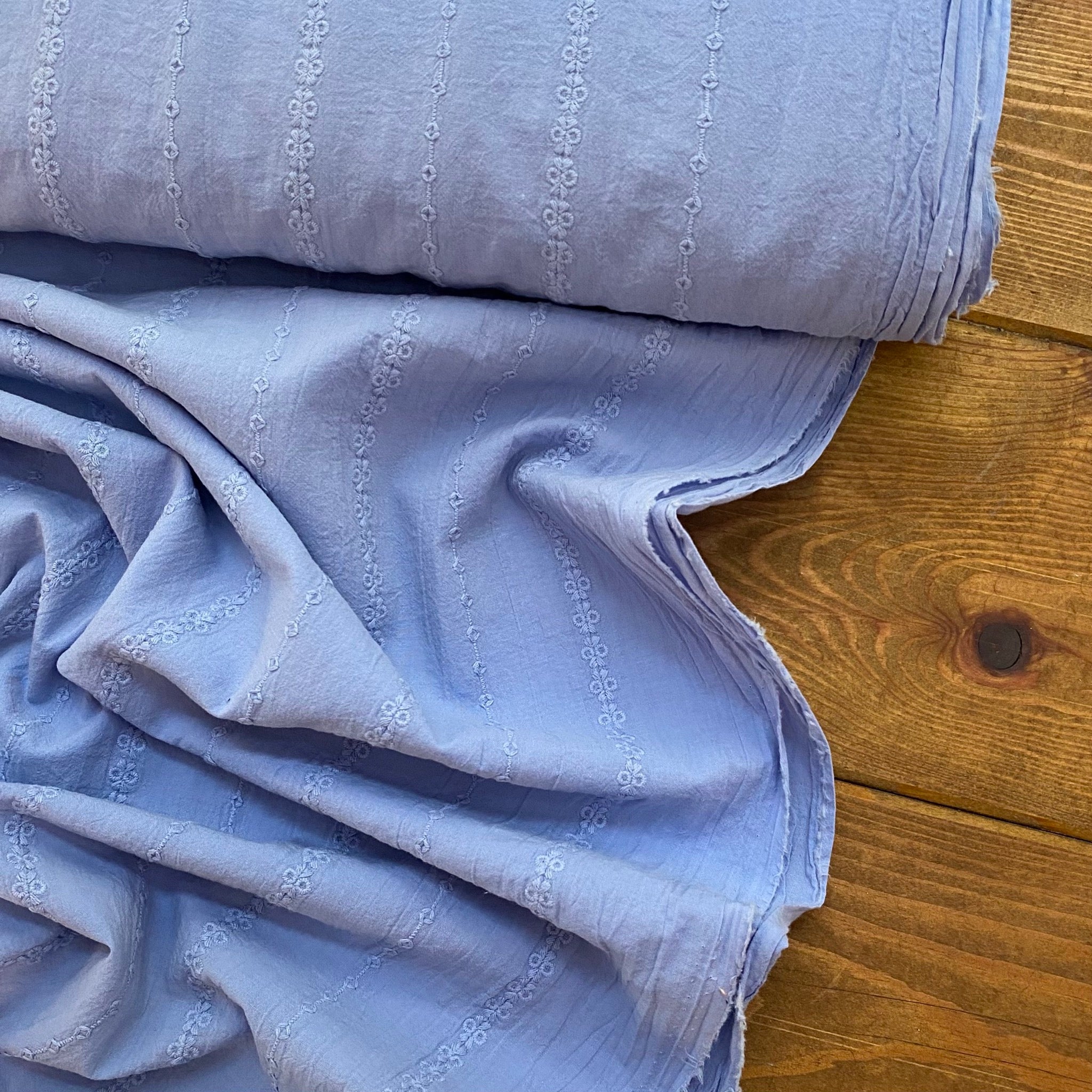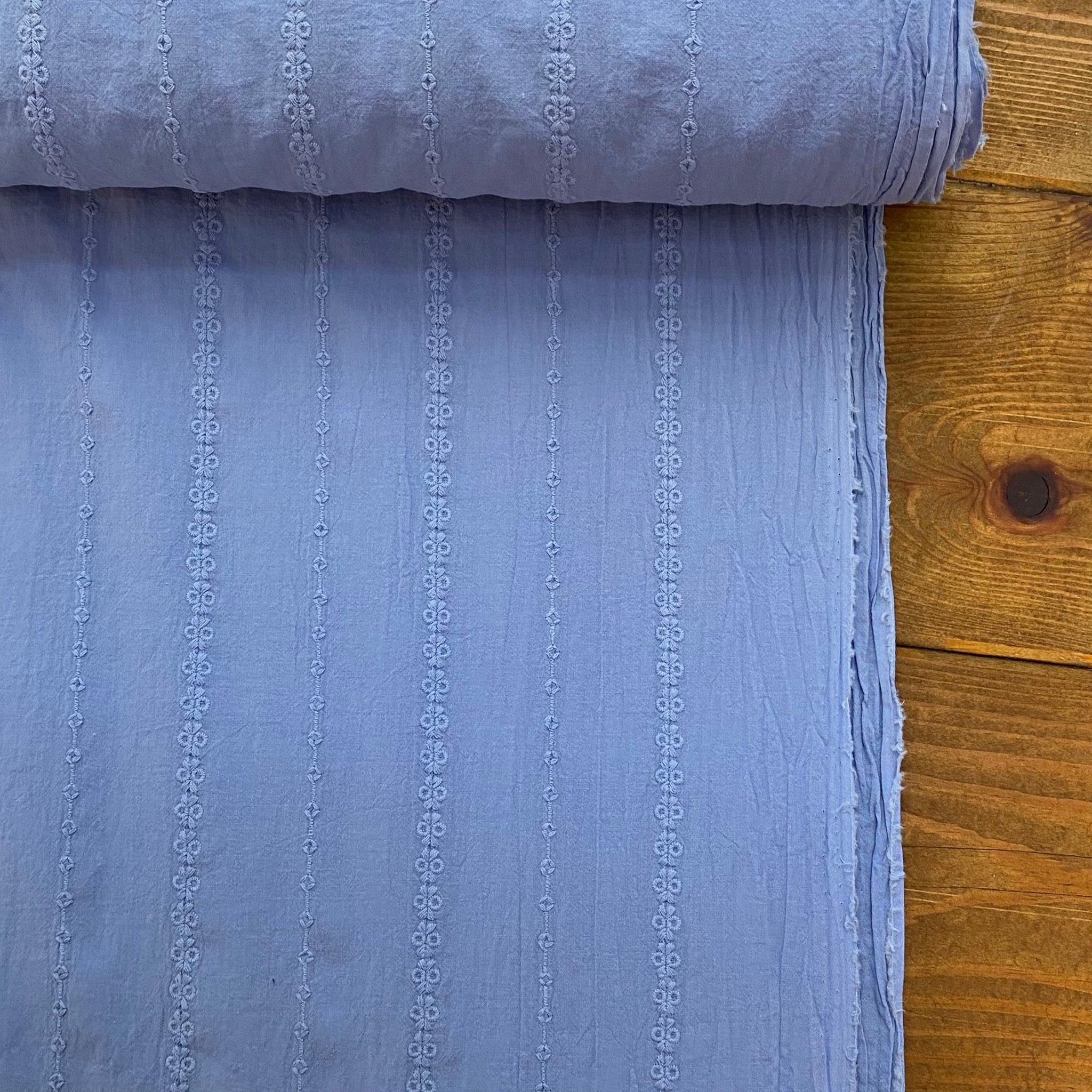 Cotton Voile Embroidery Stripes - Cornflower Blue - Cotton Fabric