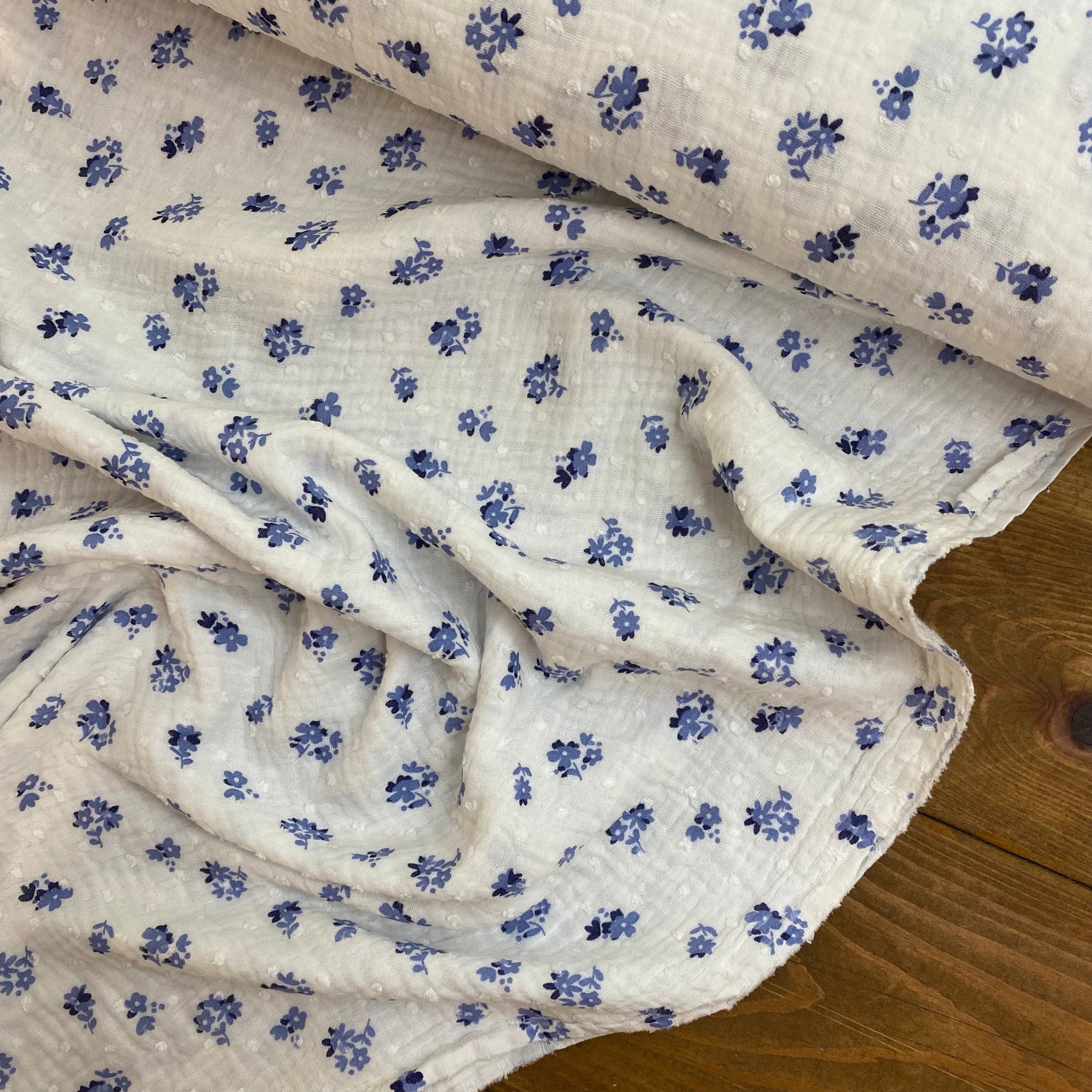 Dobby Double gauze - Blue Flowers - Cotton Fabric