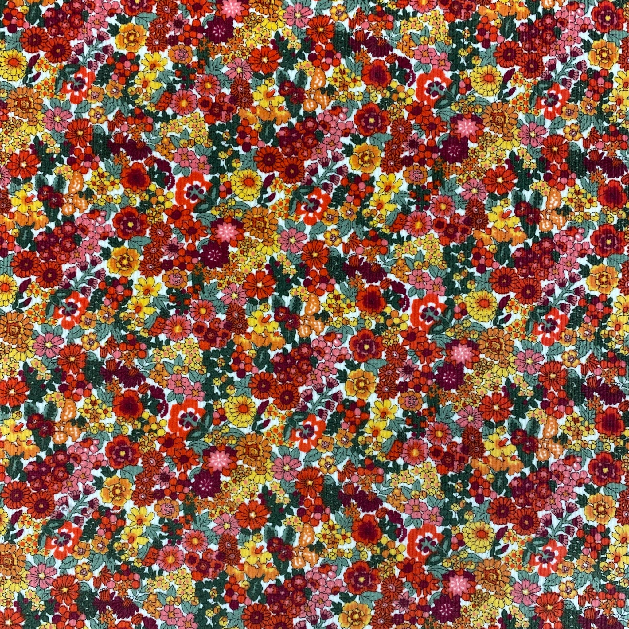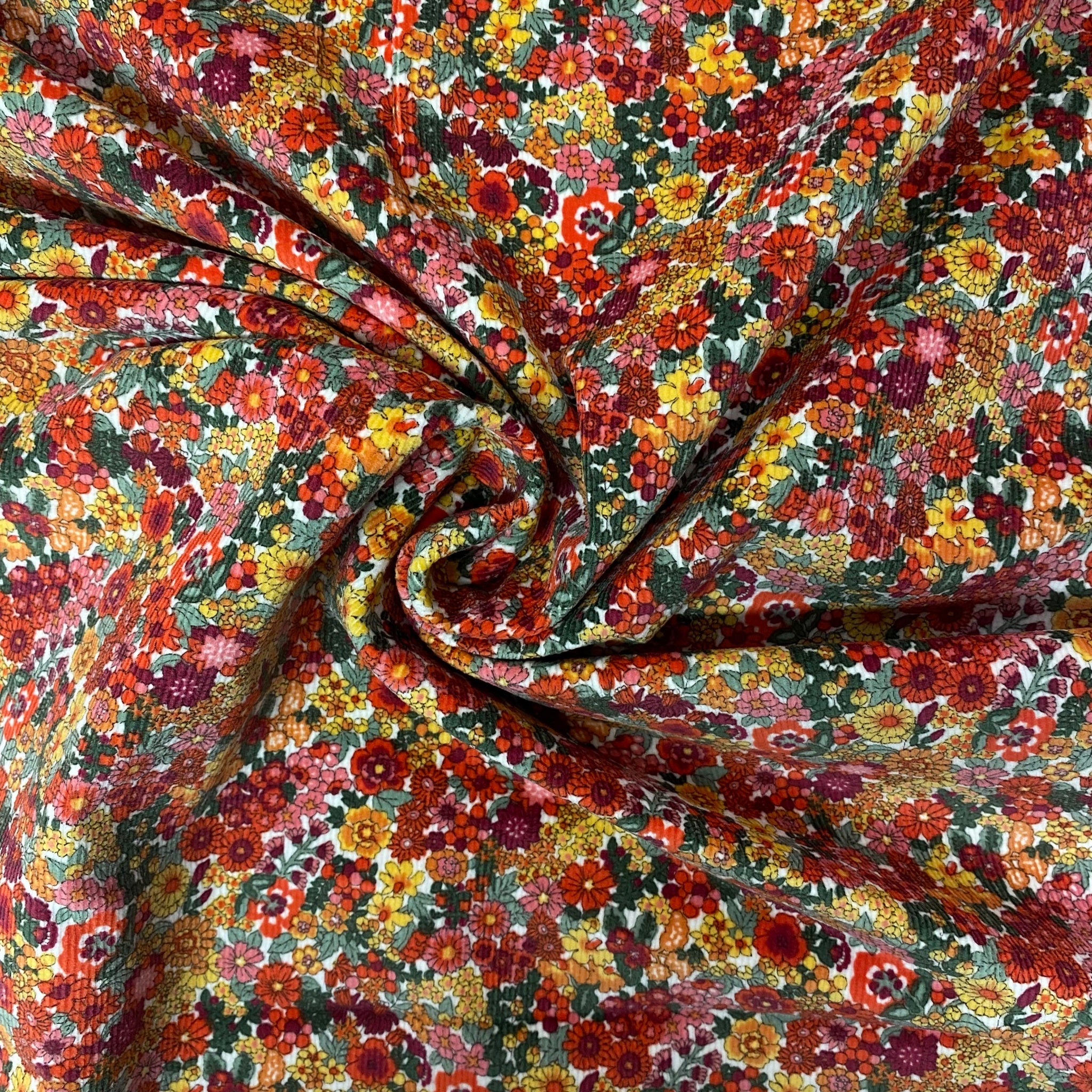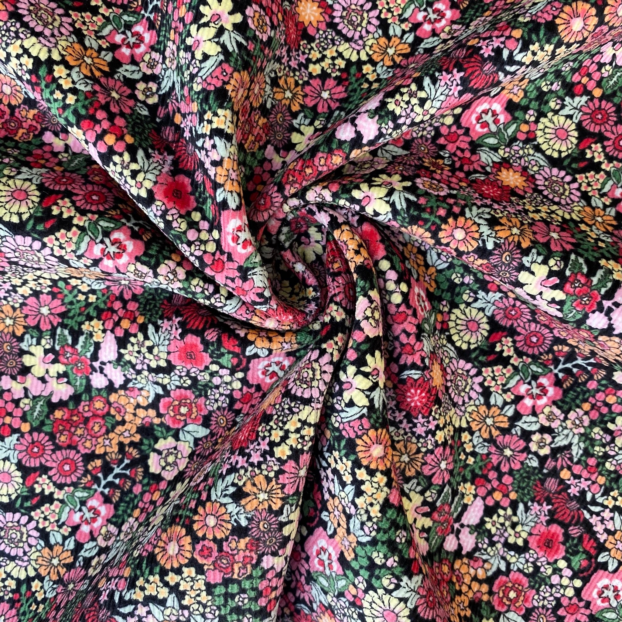 This soft touch corduroy pops a beautiful range of colours It's super warm floral design is perfect for those garments you want to stand out, pinafore, trousers, shirts, dresses.